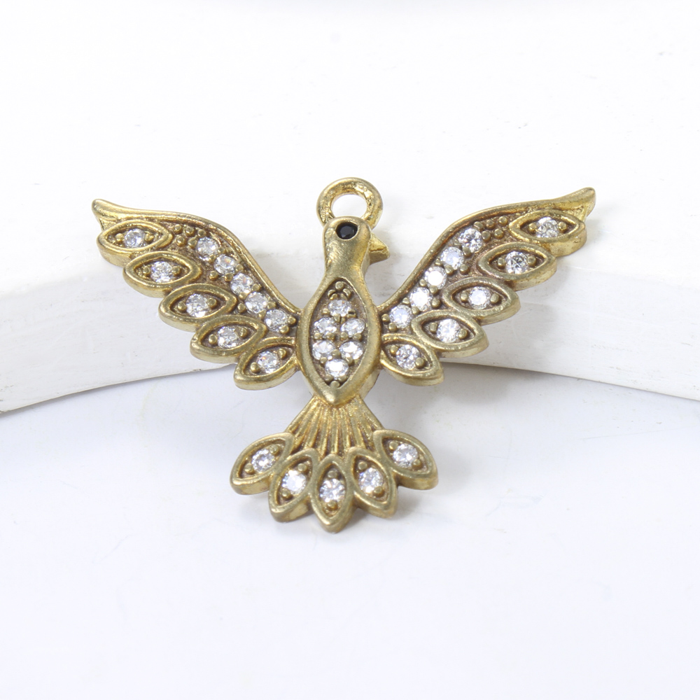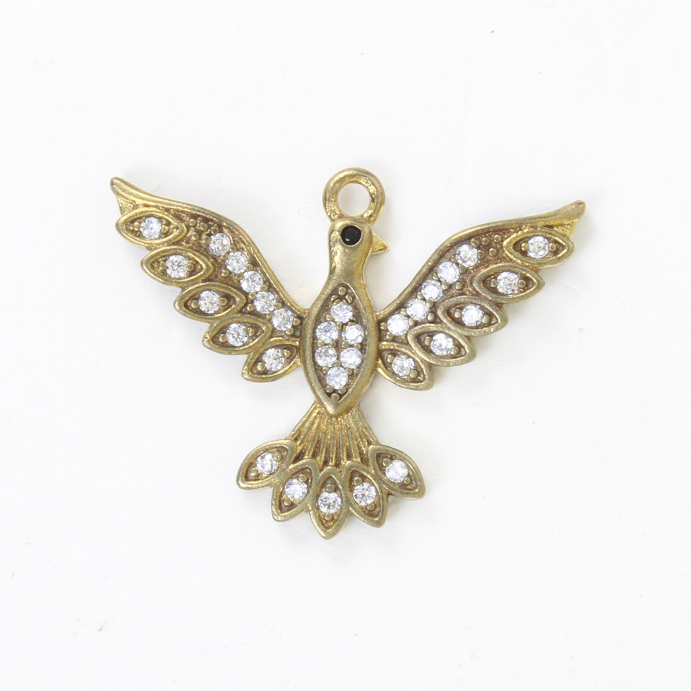 Pendants Prás Rhinestone, Éan, plátáilte, DIY & le rhinestone, órga, nicil, luaidhe & caidmiam saor in aisce, 22x28.20x2.30mm, Díolta De réir PC