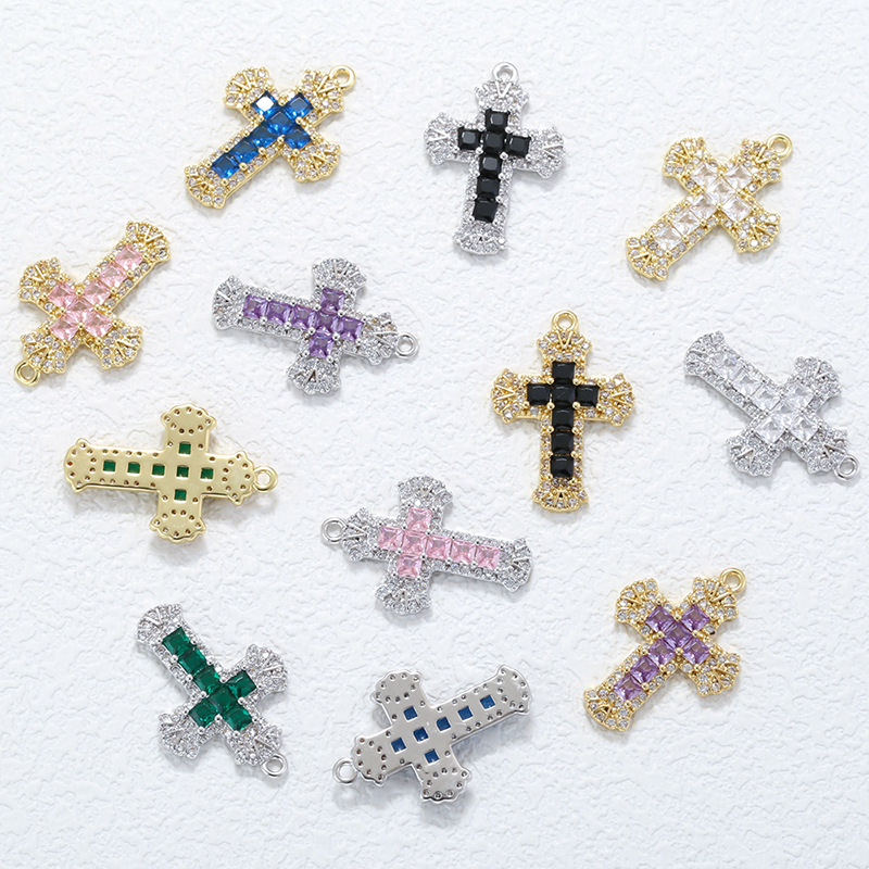 Pendants Prás Rhinestone, Cross, plátáilte, DIY & le rhinestone, dathanna níos mó le haghaidh rogha, 16x23mm, Díolta De réir PC