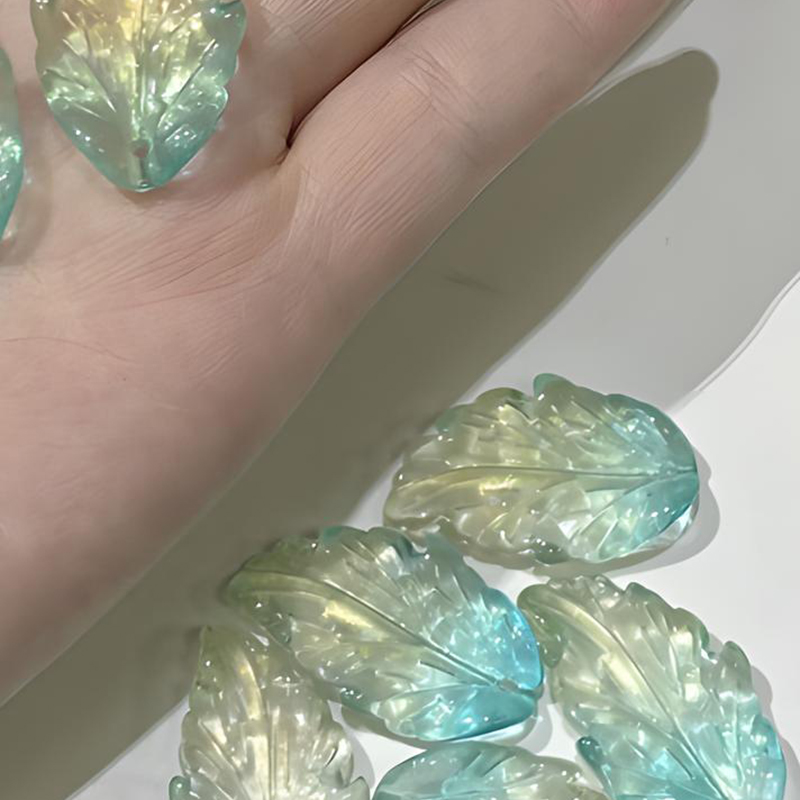 Pendants Lampwork Faisean, Leaf, DIY, Dath Randamach, 16x27mm, Díolta De réir PC
