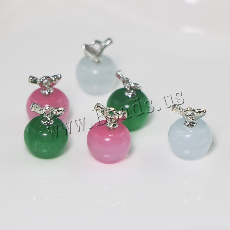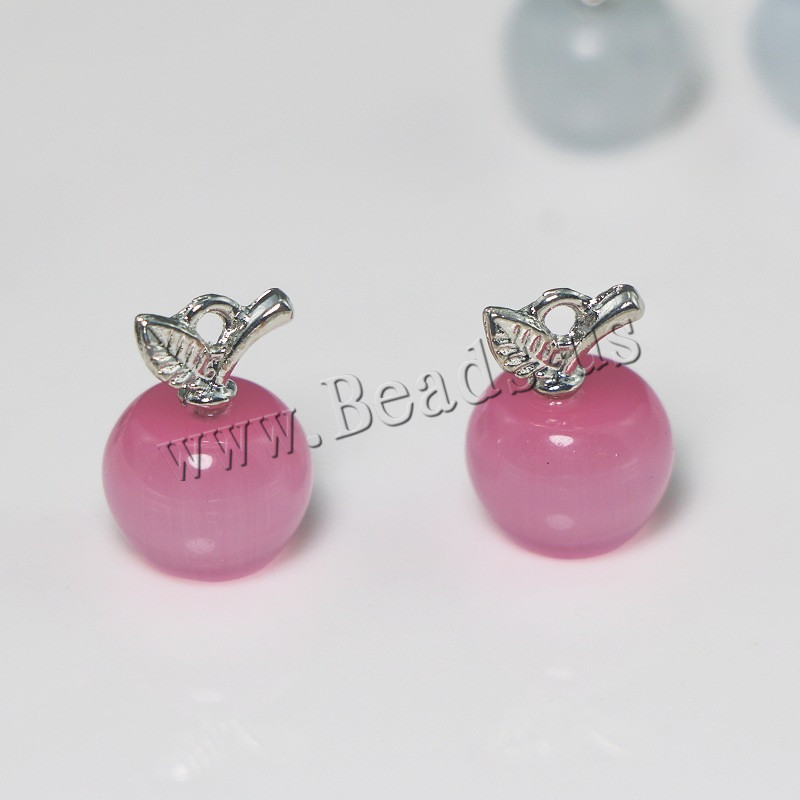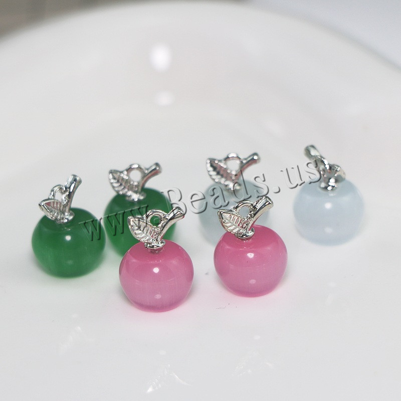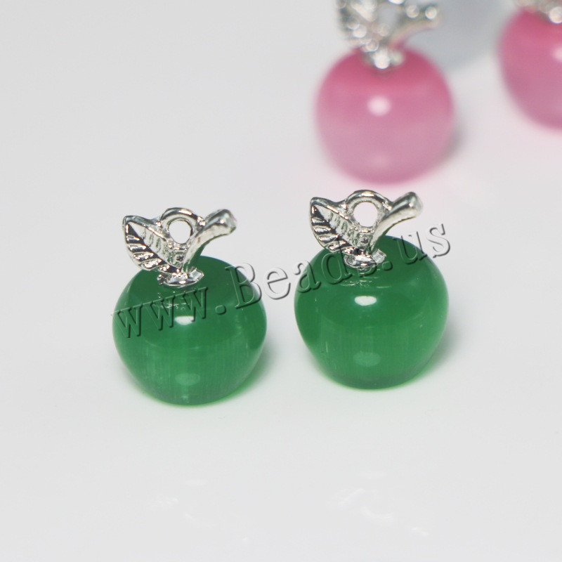 Cait Eye Pendants, Sinc Alloy, le Cait Eye, Apple, dath airgid plated, DIY, dathanna níos mó le haghaidh rogha, nicil, luaidhe & caidmiam saor in aisce, Díolta De réir PC