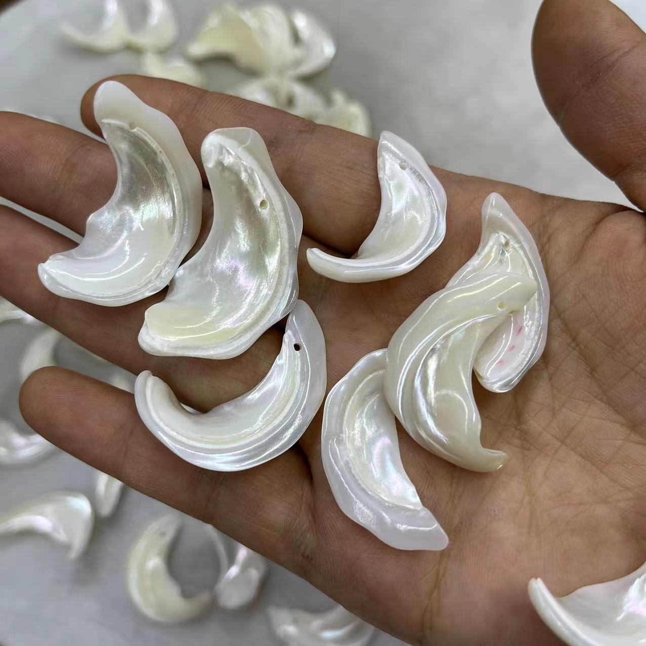 Bhlaosc Pendants, Barr Shell, Gealach, DIY, bán, Length about 25-38mm, Díolta De réir PC