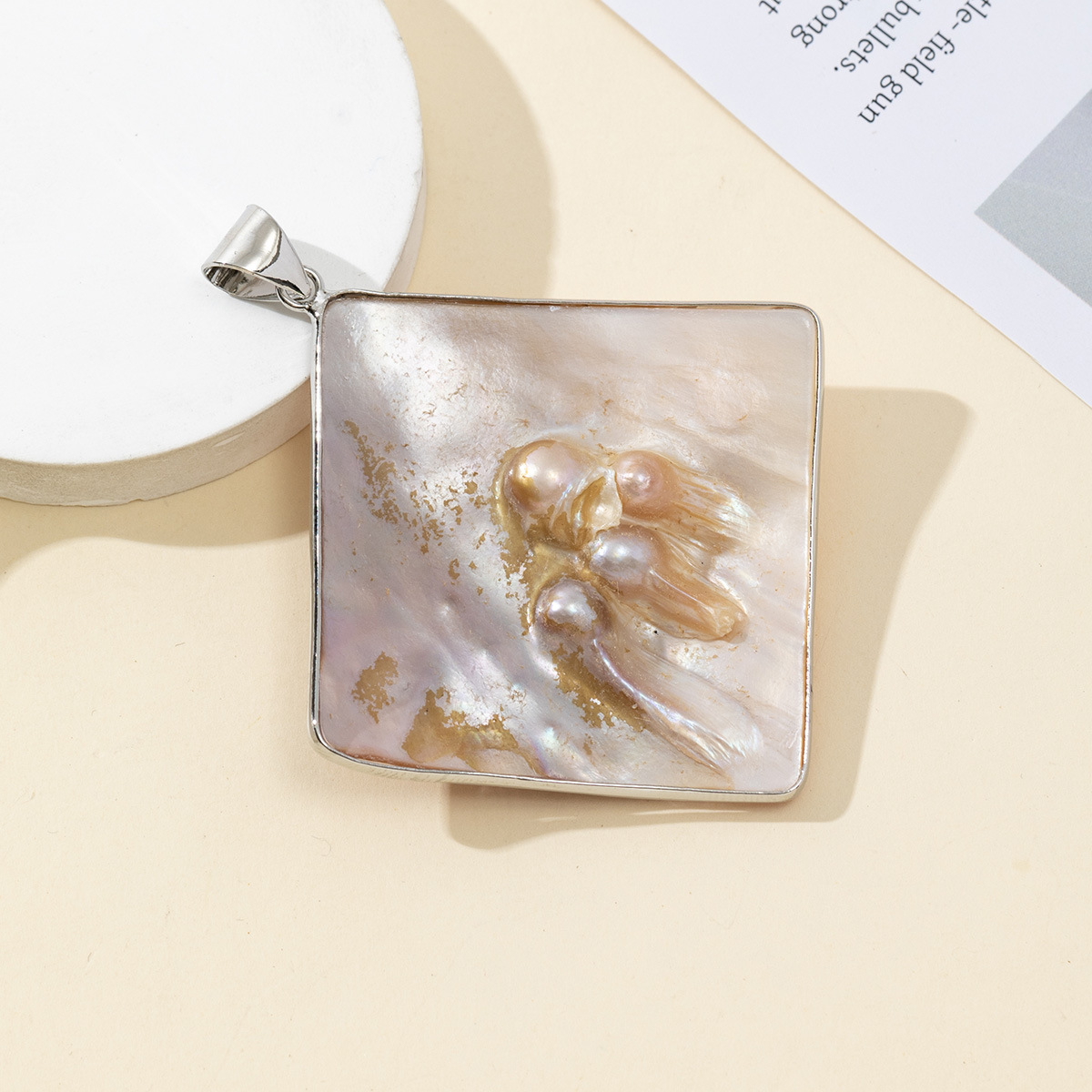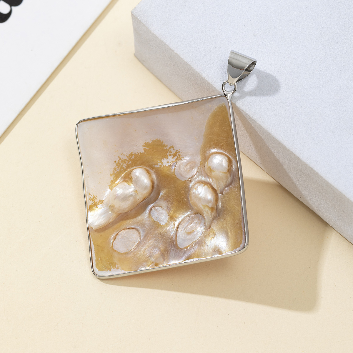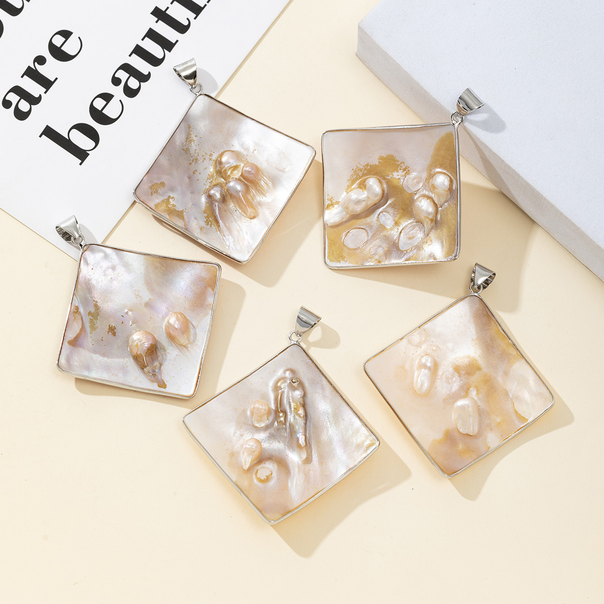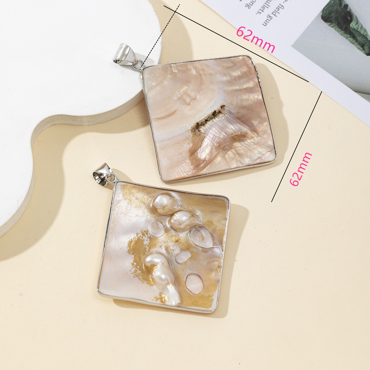 Bhlaosc Pendants, Shell, le Pearl Fionnuisce, Rhombus, DIY, nicil, luaidhe & caidmiam saor in aisce, 62x62mm, Díolta De réir PC