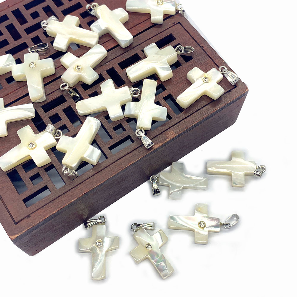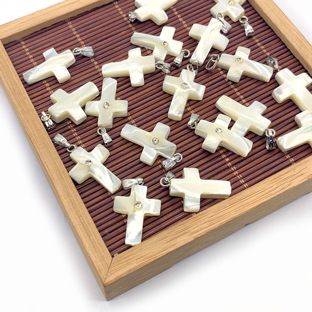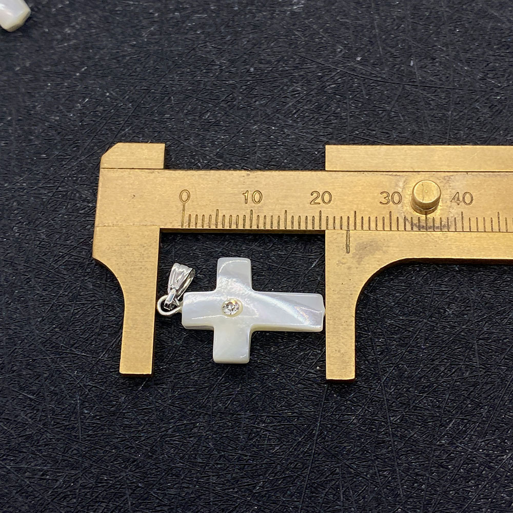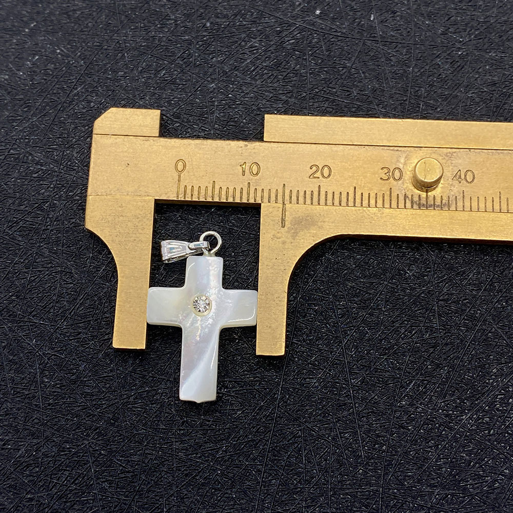 Pendants White Shell Nádúrtha, Cross, DIY & stíleanna éagsúla do rogha & le rhinestone, dathanna níos mó le haghaidh rogha, 15x24mm, Díolta De réir PC