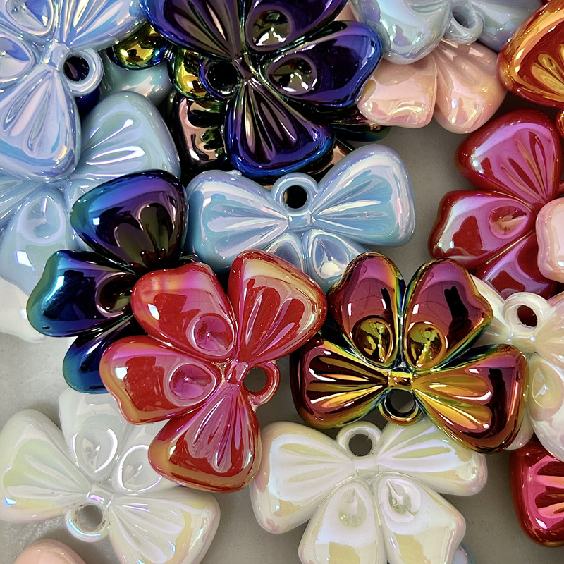 Coirníní Aicrileach plátáilte, Bowknot, DIY, dathanna níos mó le haghaidh rogha, 45x34mm, 100ríomhairí pearsanta/Mála, Díolta De réir Mála
