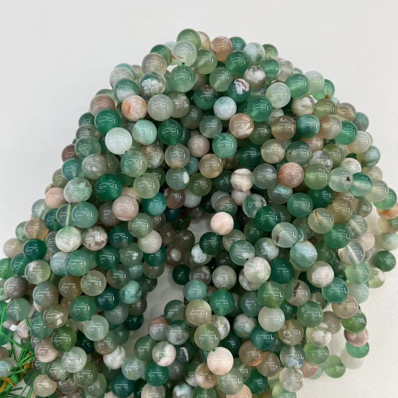 Coirníní Agate, White Cherry Blossom Agate, Babhta, nádúrtha & DIY & méid éagsúla do rogha, glas, Díolta De réir Snáithe