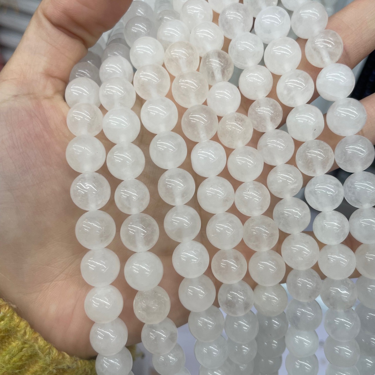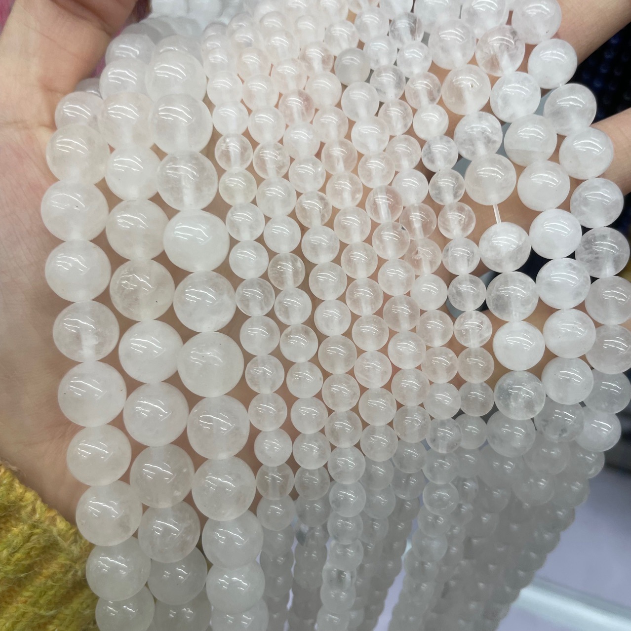 Nádúrtha Geal Grianchloch Beads, Babhta, DIY & méid éagsúla do rogha, bán, Díolta De réir Snáithe
