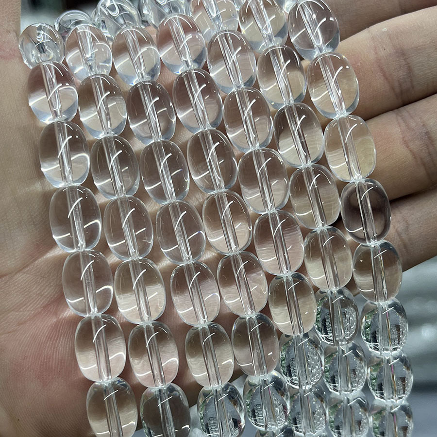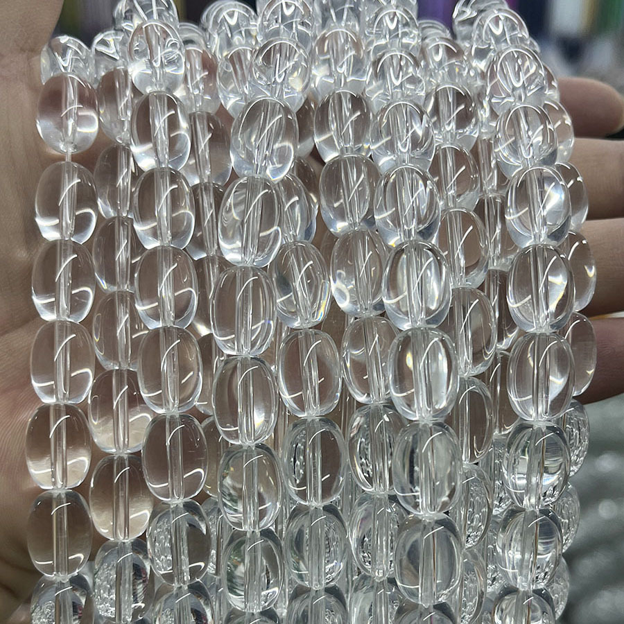 Nádúrtha Geal Grianchloch Beads, éilips, DIY, soiléir, 10-13mm, Díolta Per Thart 38 cm Snáithe