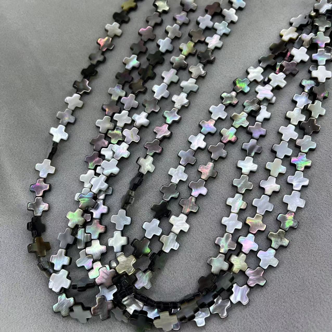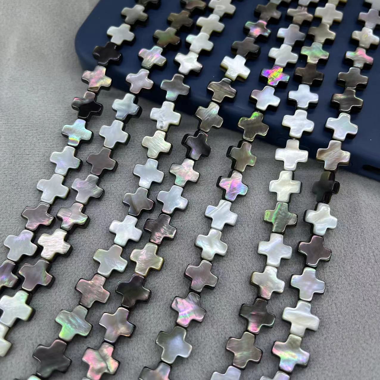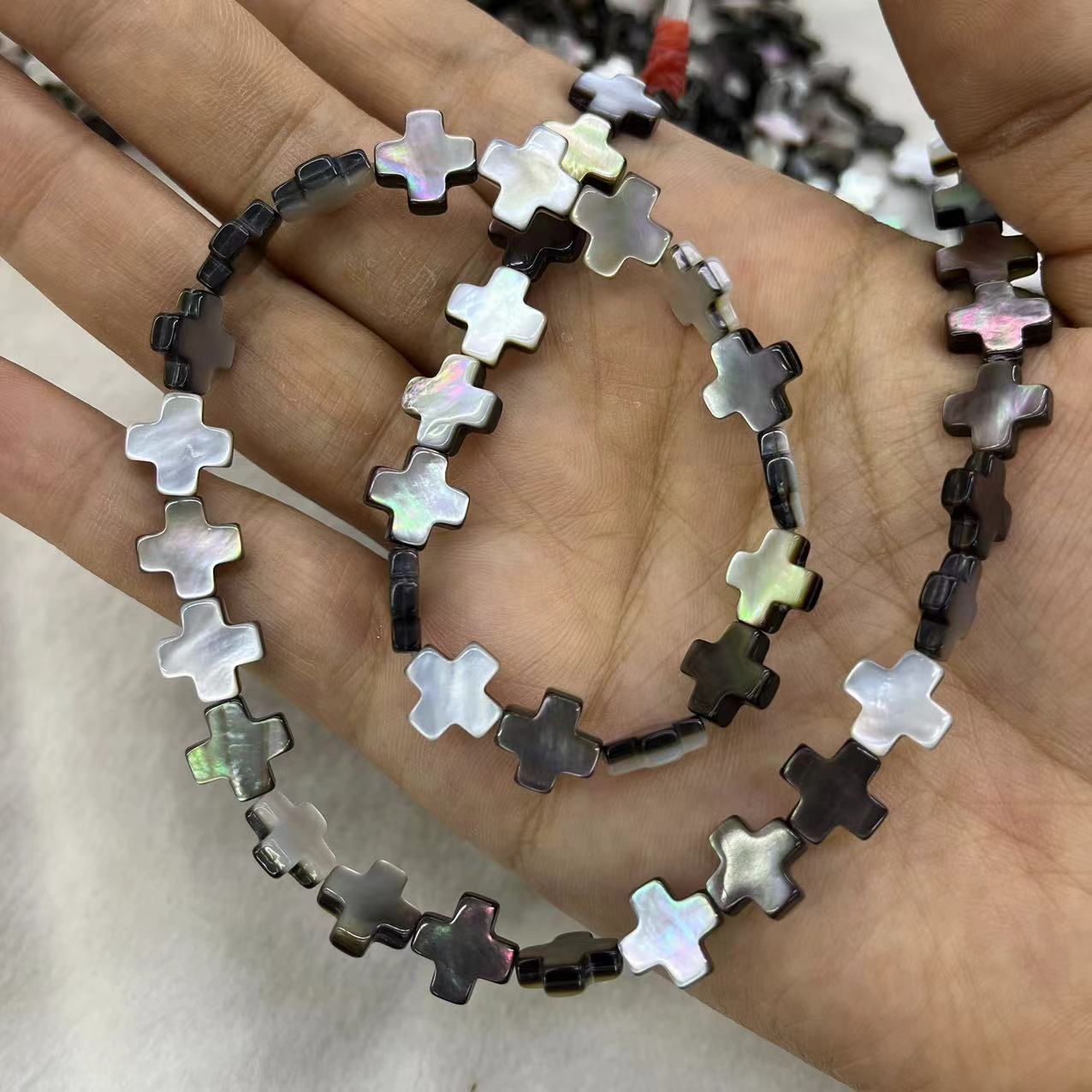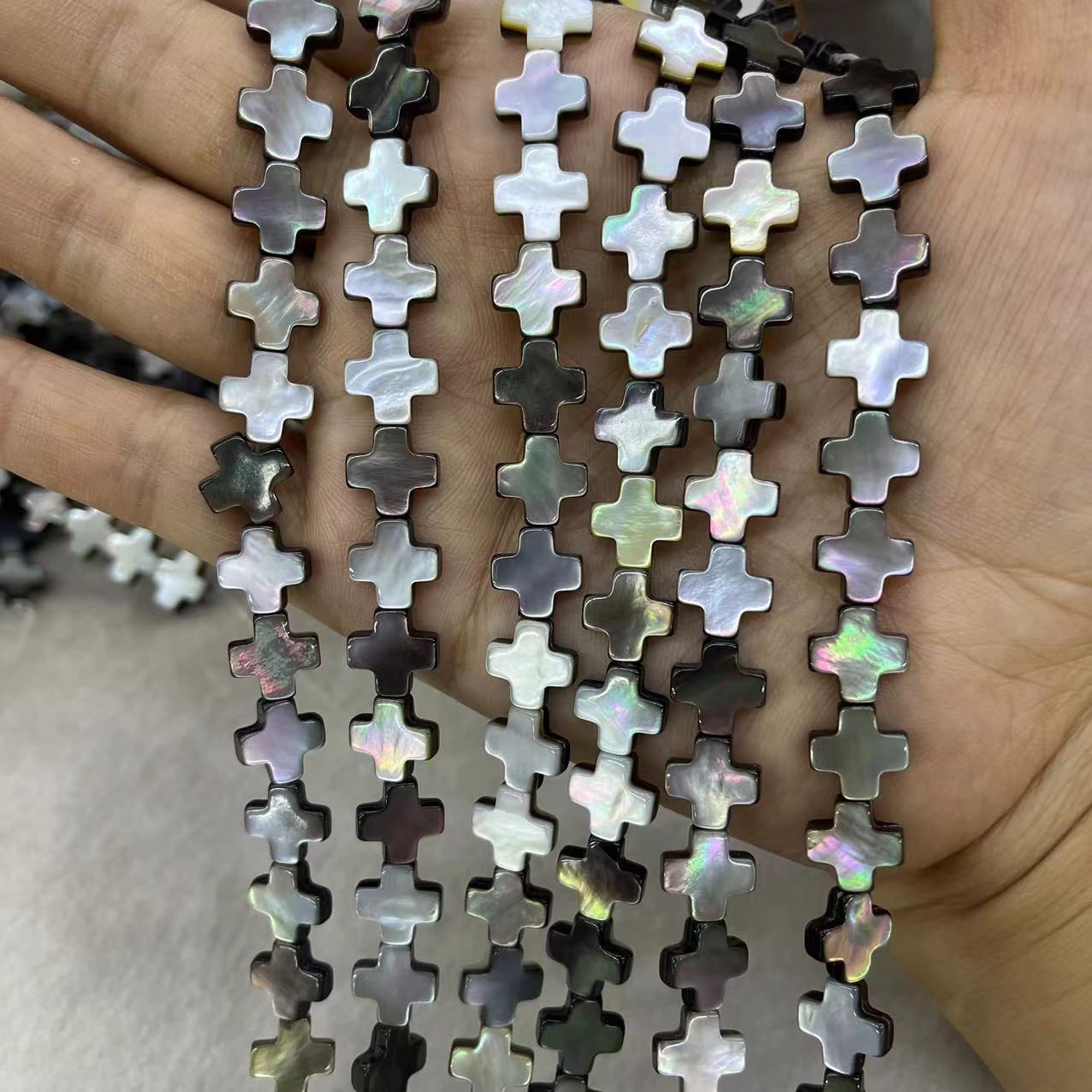 Coirníní Dubh Shell, Cross, cainníocht dhifriúil do rogha & DIY, 10mm, Díolta De réir Snáithe