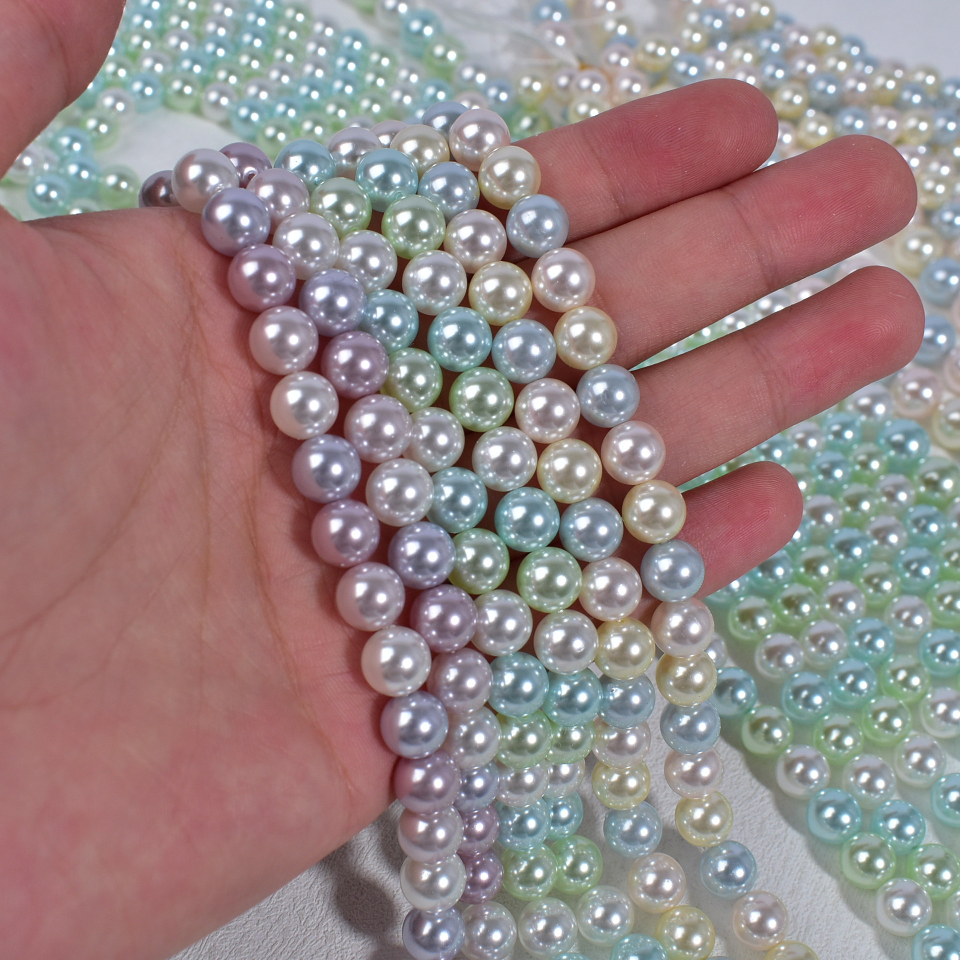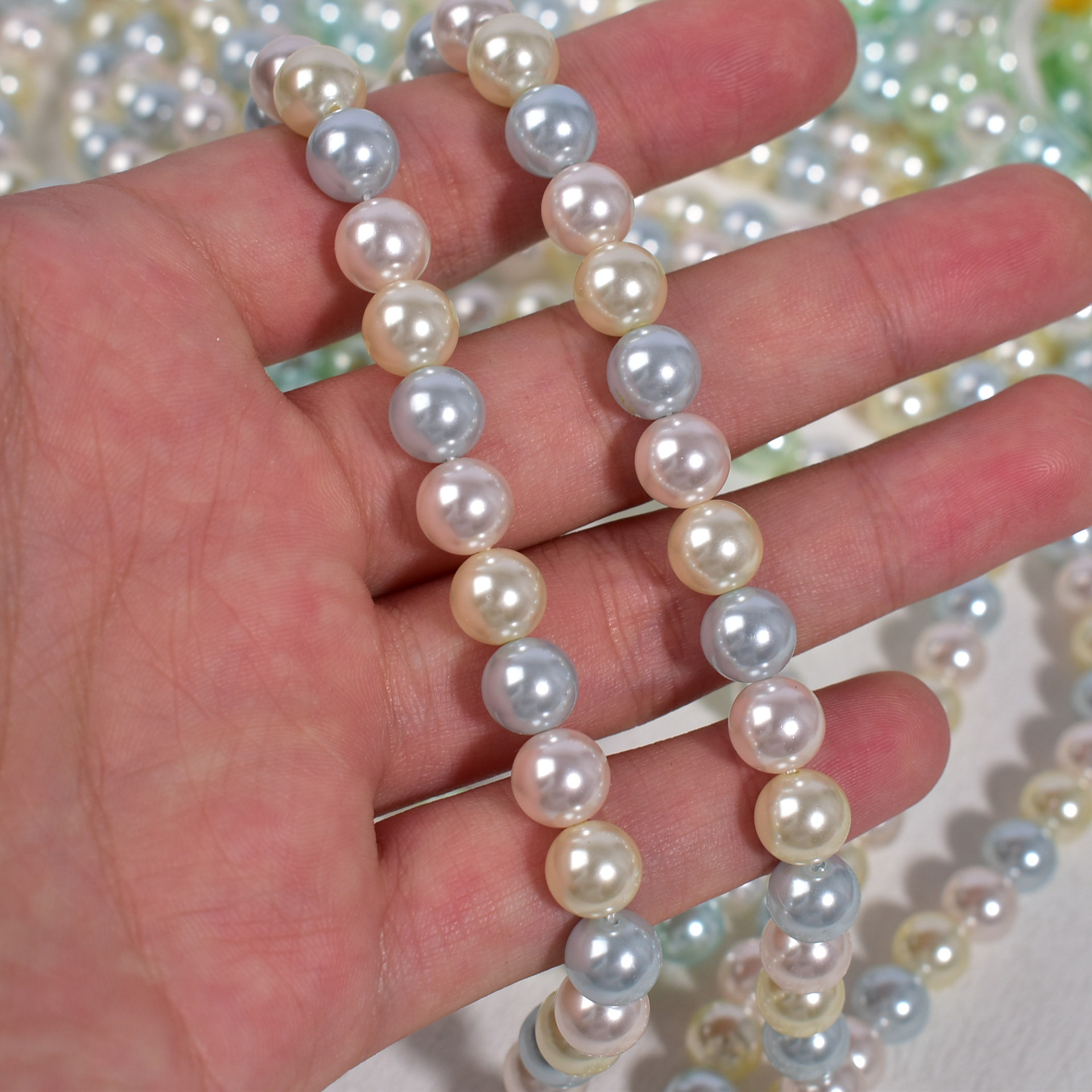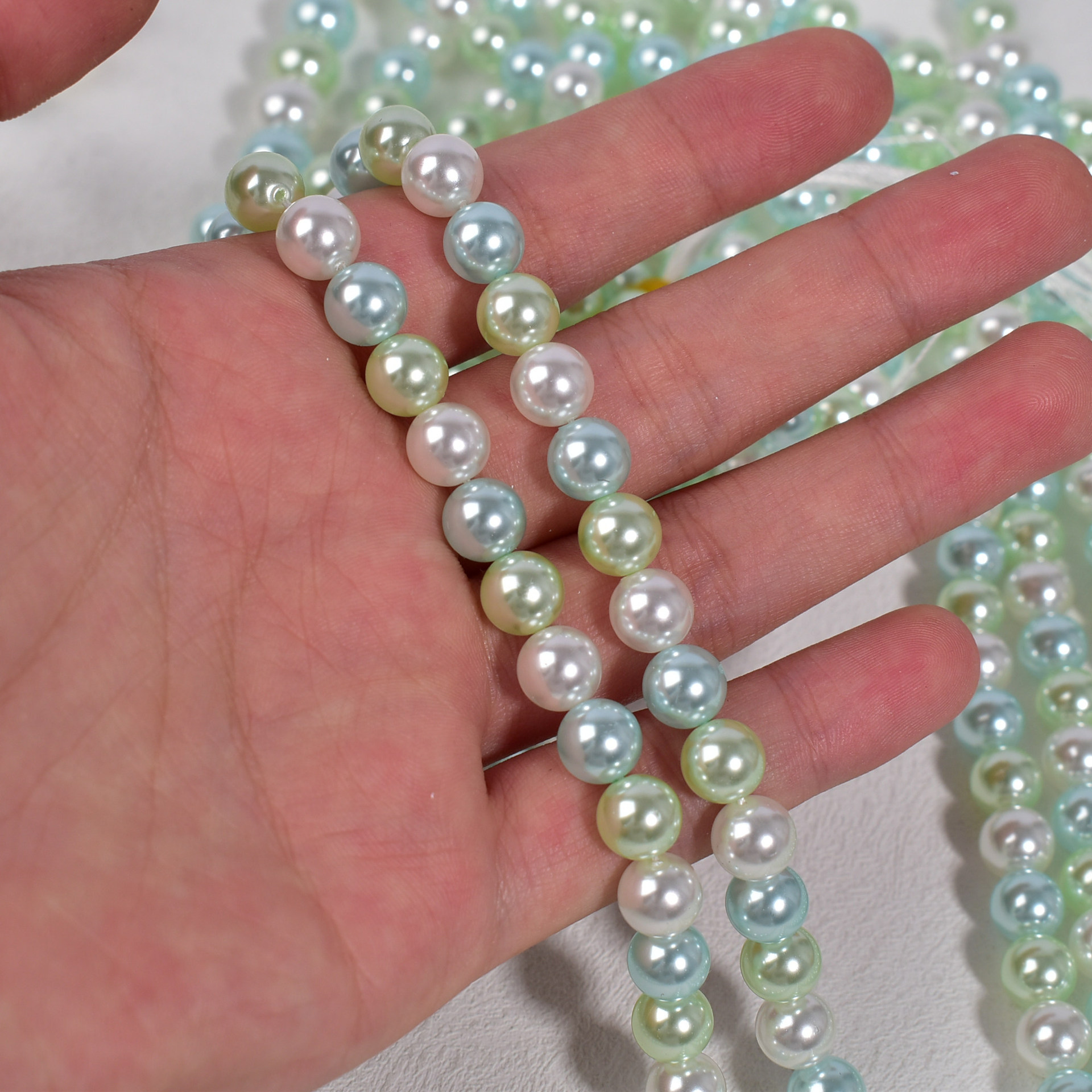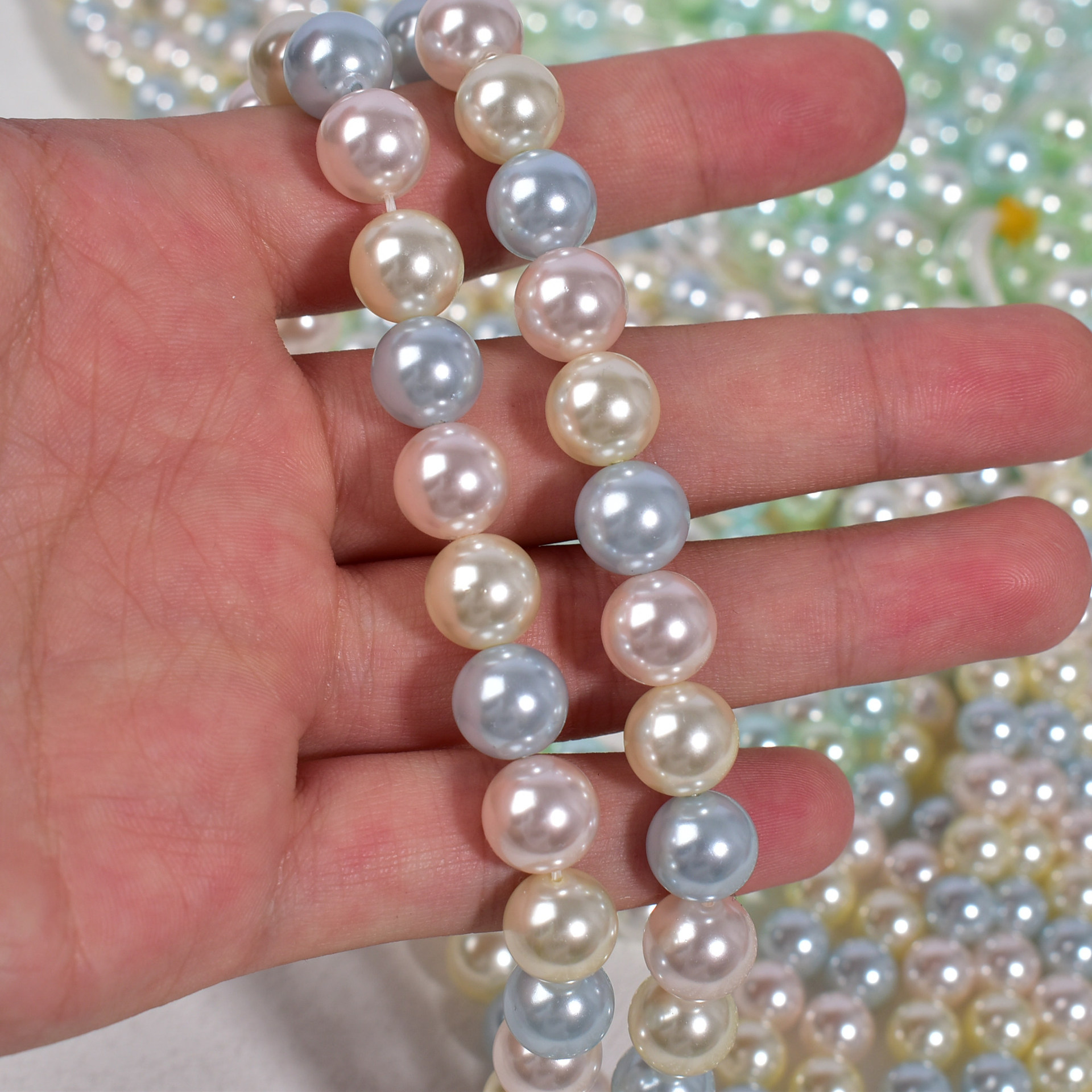 8mm, about 50 pieces per stringAbout 40 pieces in a string of 10mm