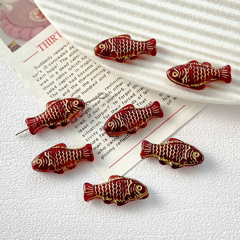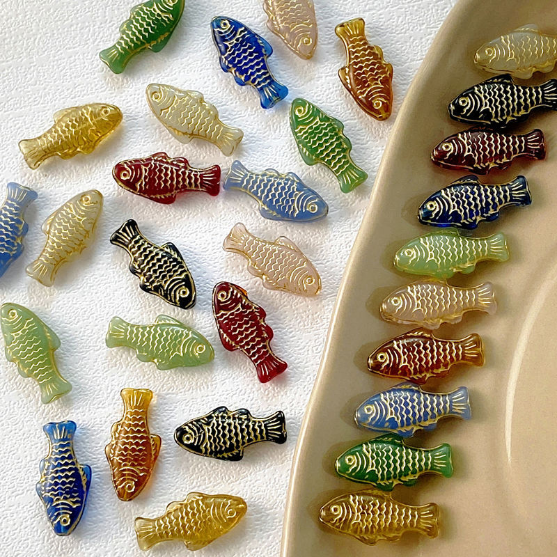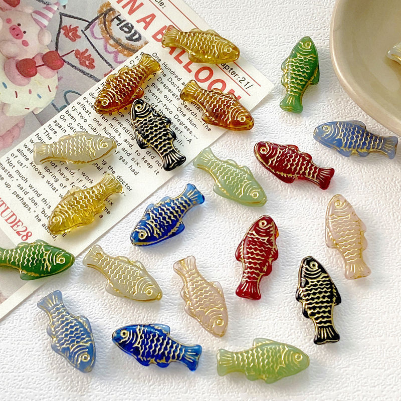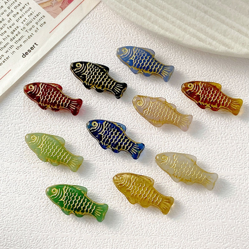 Coirníní Lampwork Ainmhithe, Éisc, DIY, dathanna níos mó le haghaidh rogha, 25x12mm, 50ríomhairí pearsanta/Mála, Díolta De réir Mála