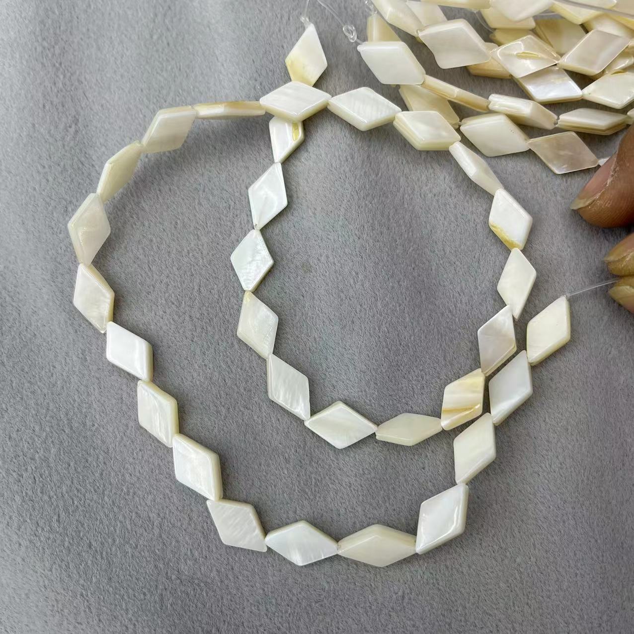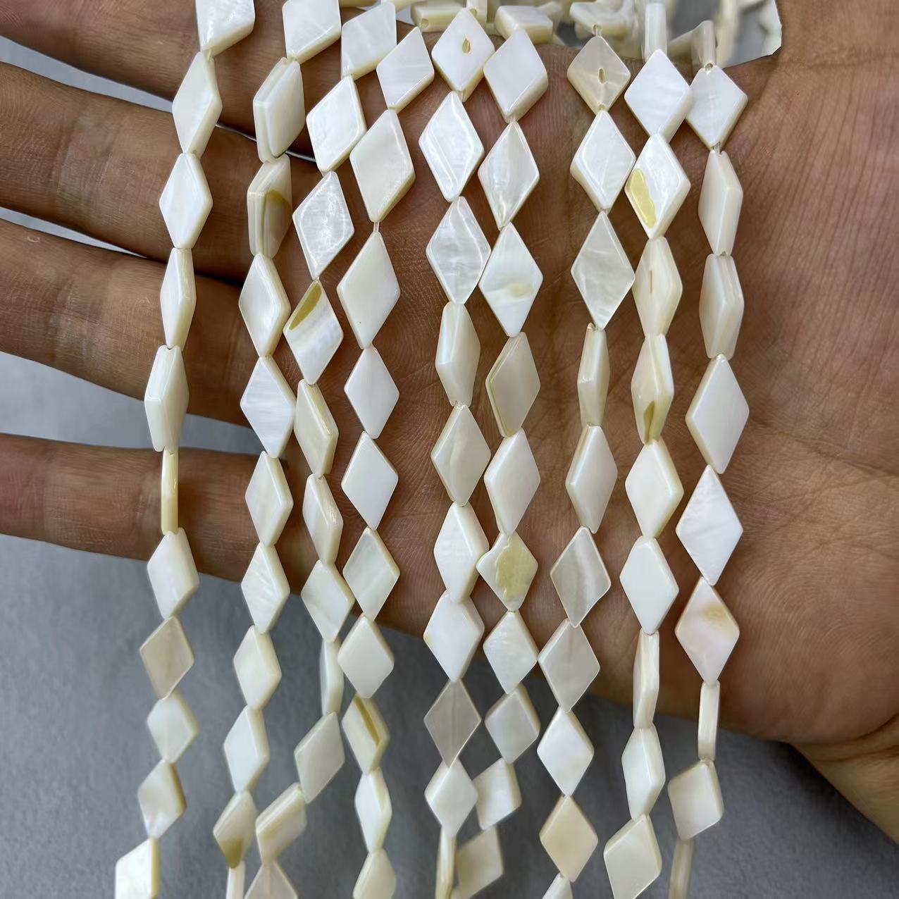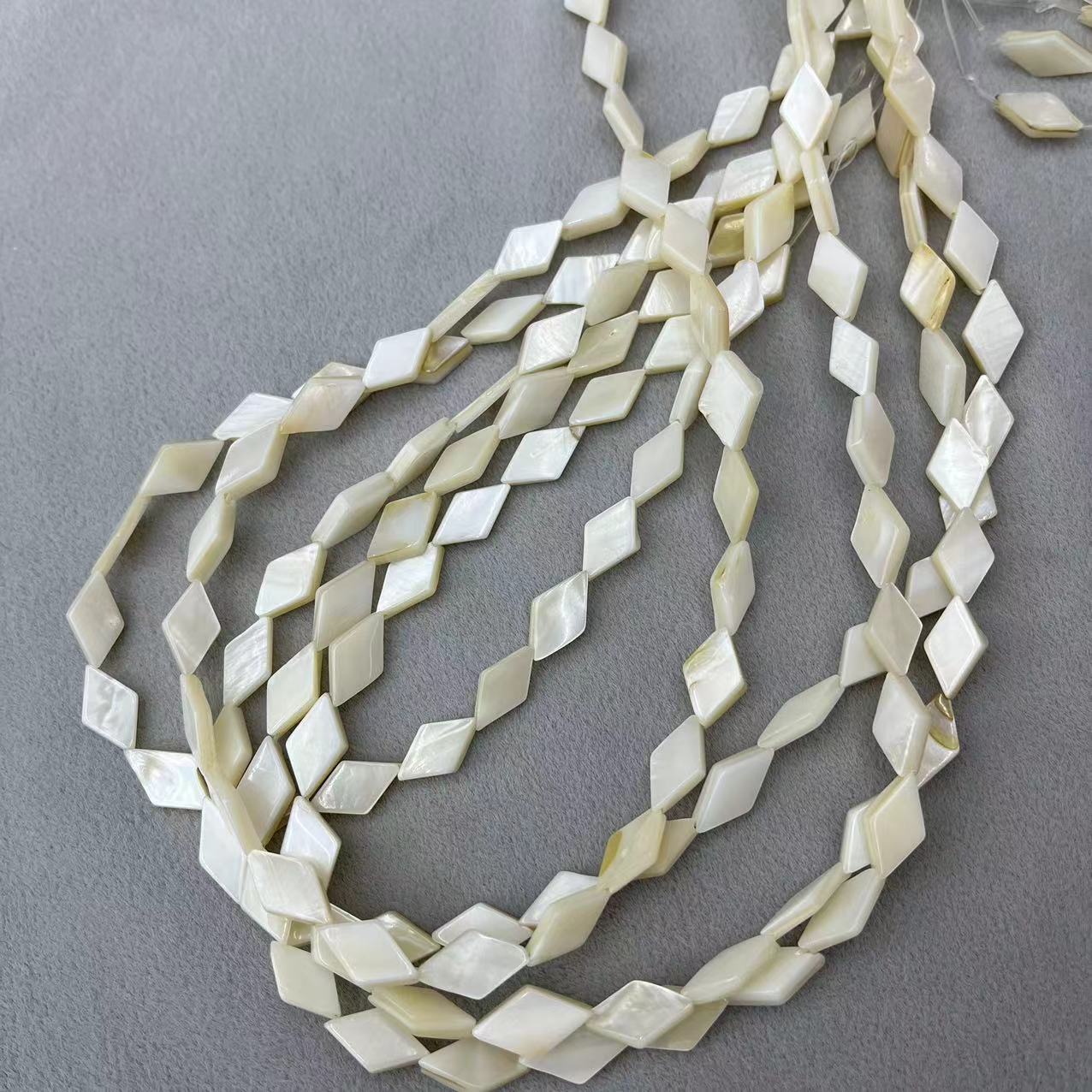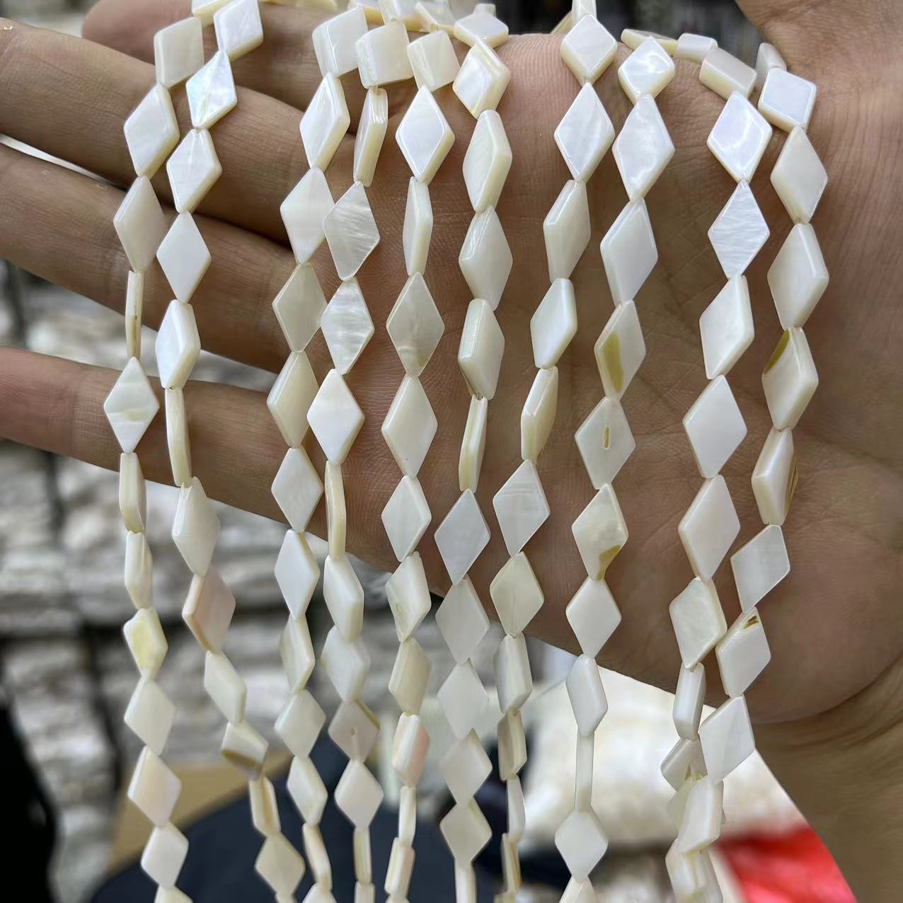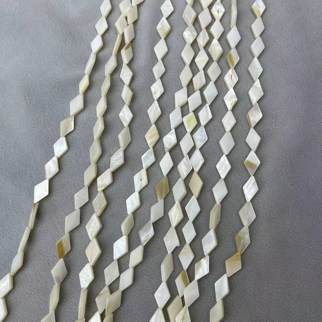 Coirníní Nádúrtha Fionnuisce Shell, Rhombus, DIY, 8x13mm, Thart 30ríomhairí pearsanta/Snáithe, Díolta De réir Snáithe