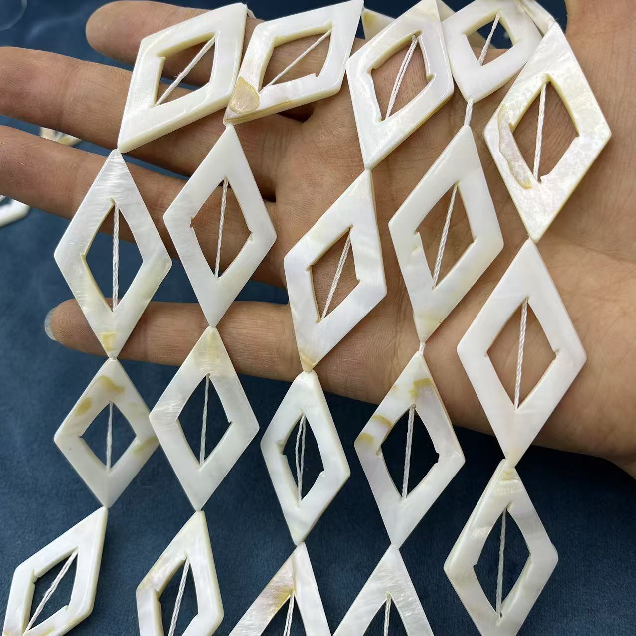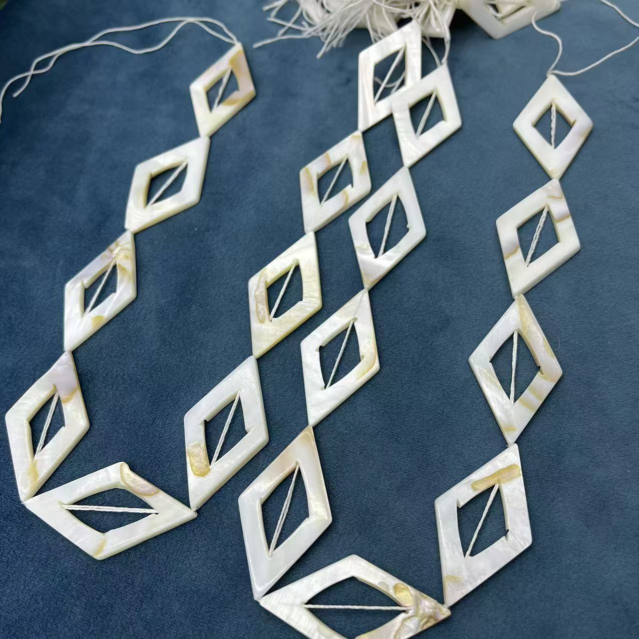 Coirníní Nádúrtha Fionnuisce Shell, Rhombus, DIY, dathanna measctha, 25x45mm, Thart 9ríomhairí pearsanta/Snáithe, Díolta De réir Snáithe