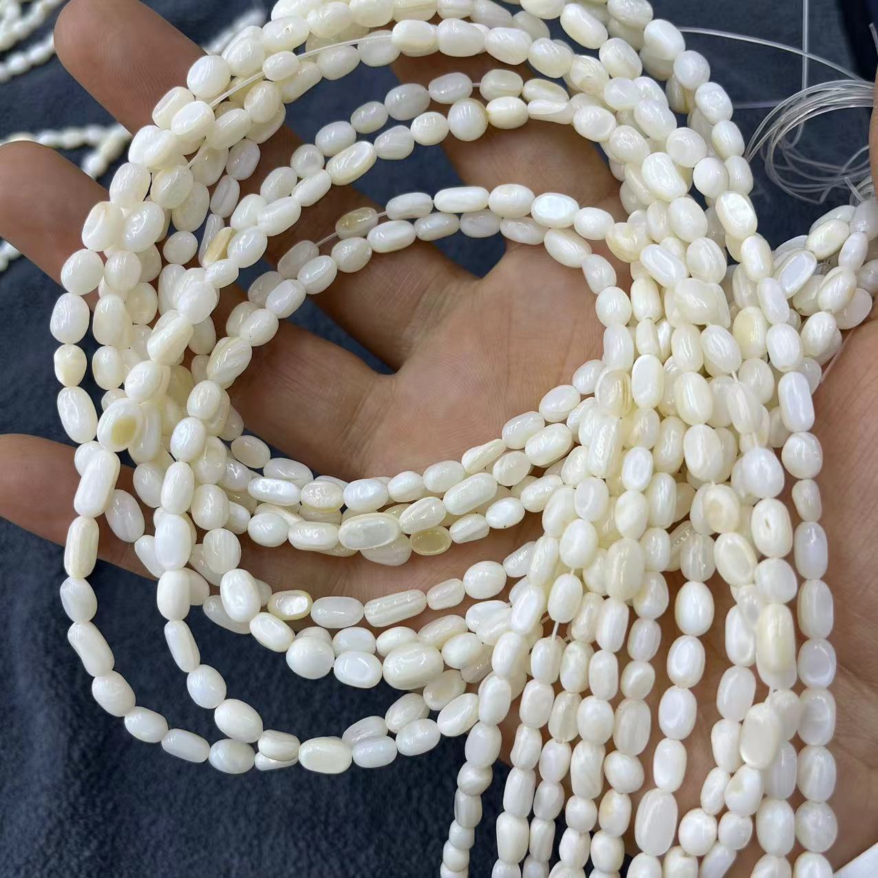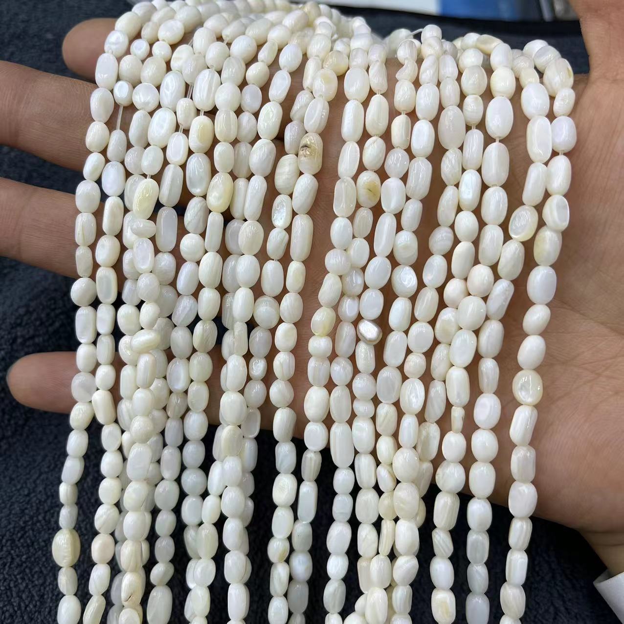 Coirníní Nádúrtha Fionnuisce Shell, Oval, DIY, bán, 5mm, Thart 56ríomhairí pearsanta/Snáithe, Díolta De réir Snáithe
