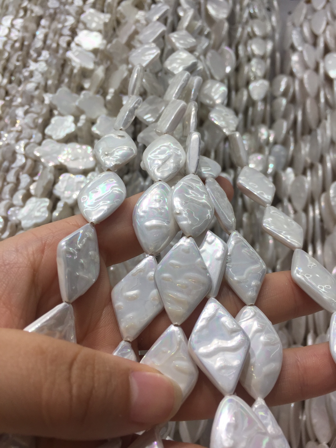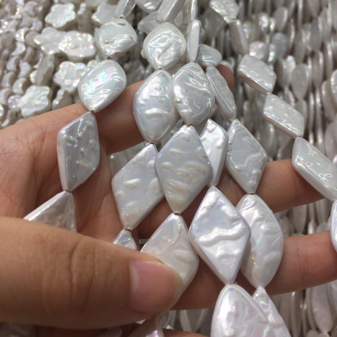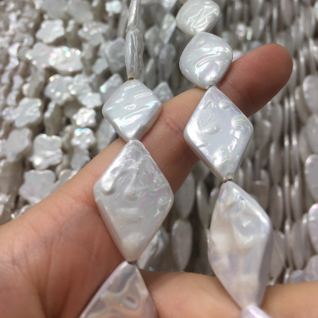 Coirníní Nádúrtha Fionnuisce Shell, Rhombus, DIY, bán, 15x24mm, Díolta De réir Snáithe