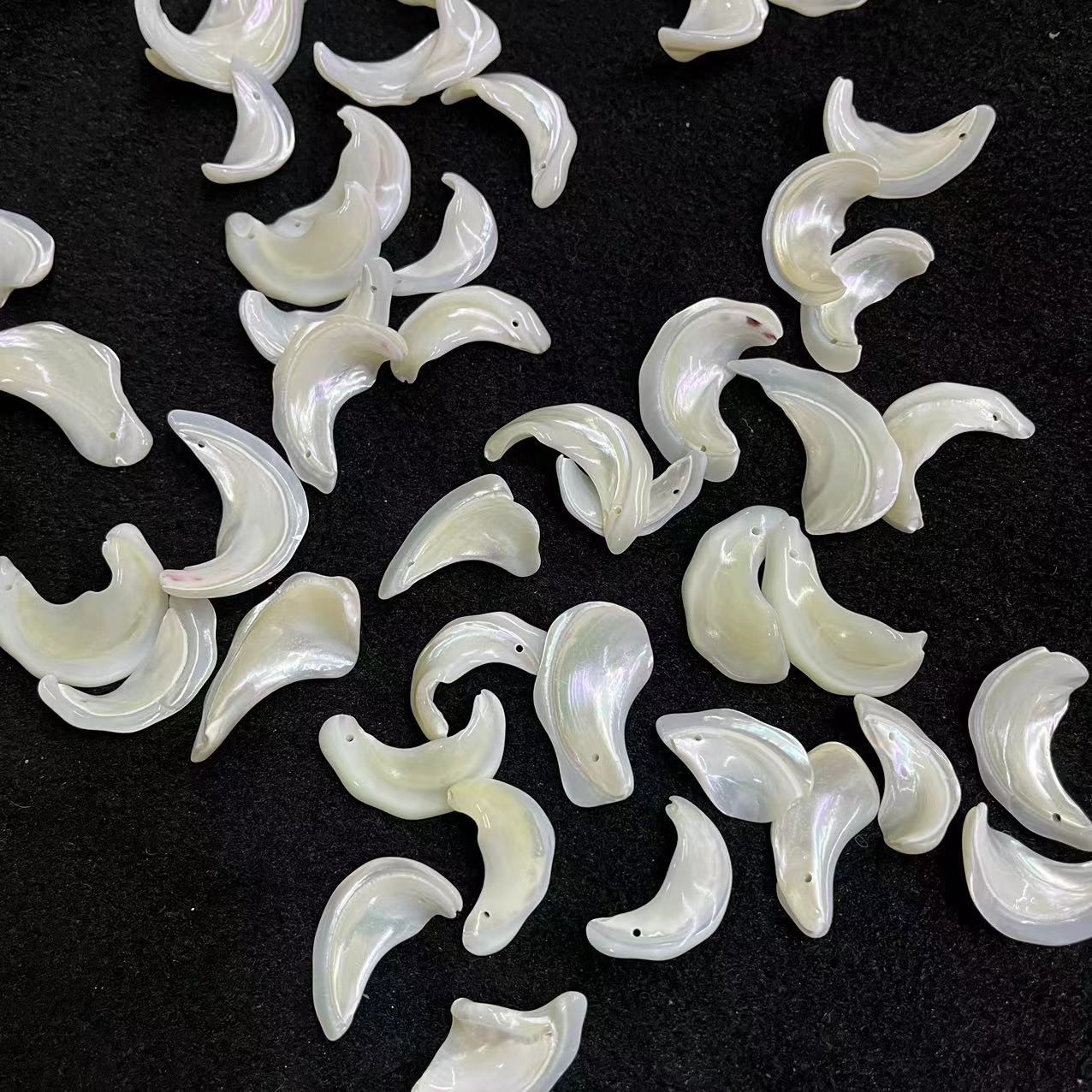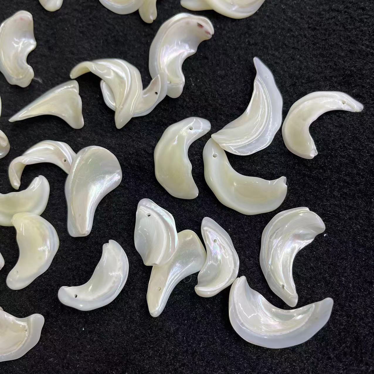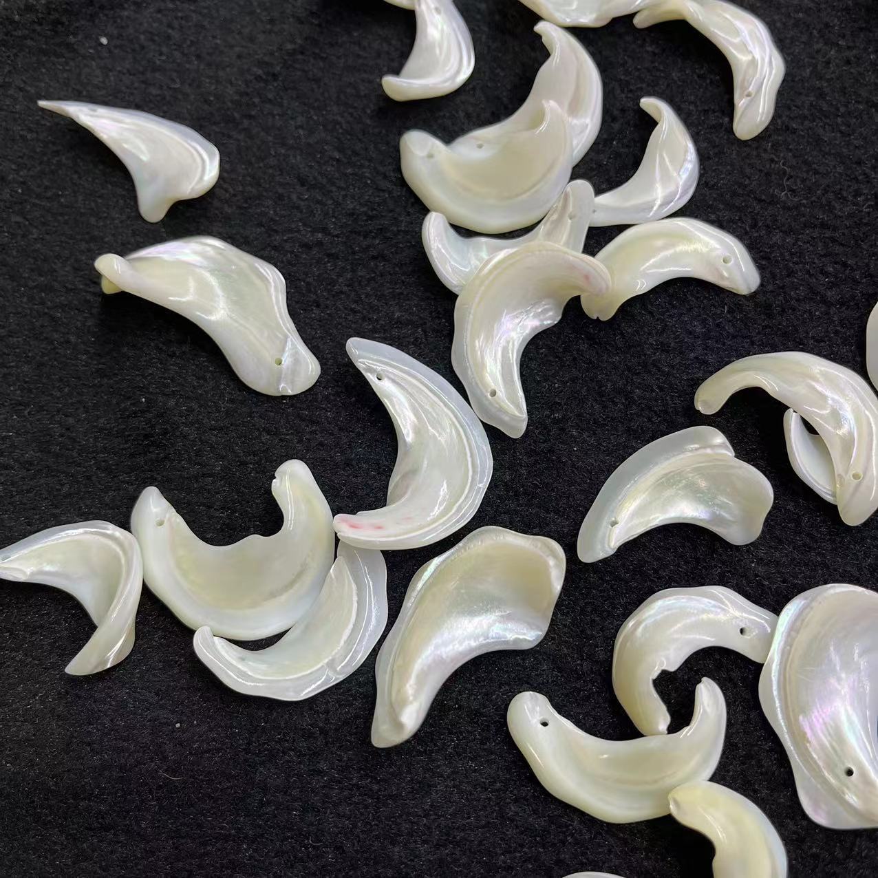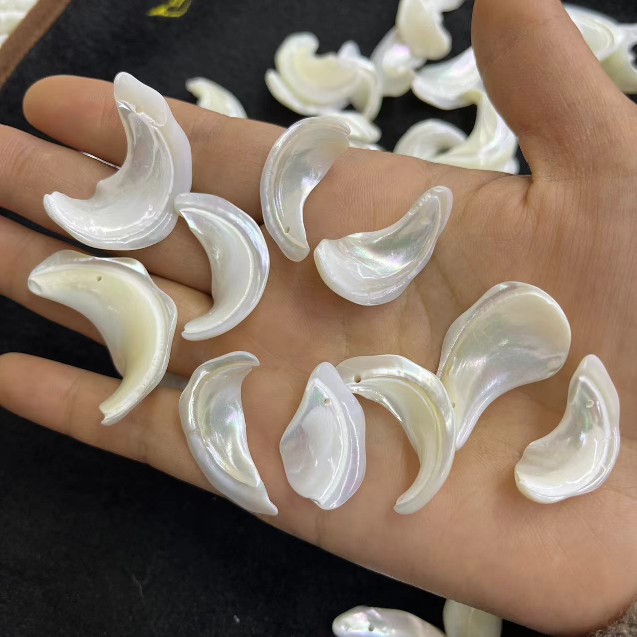 Coirníní Shell Farraige Nádúrtha, Barr Shell, Gealach, DIY, bán, Length about 25-38mm, Díolta De réir PC