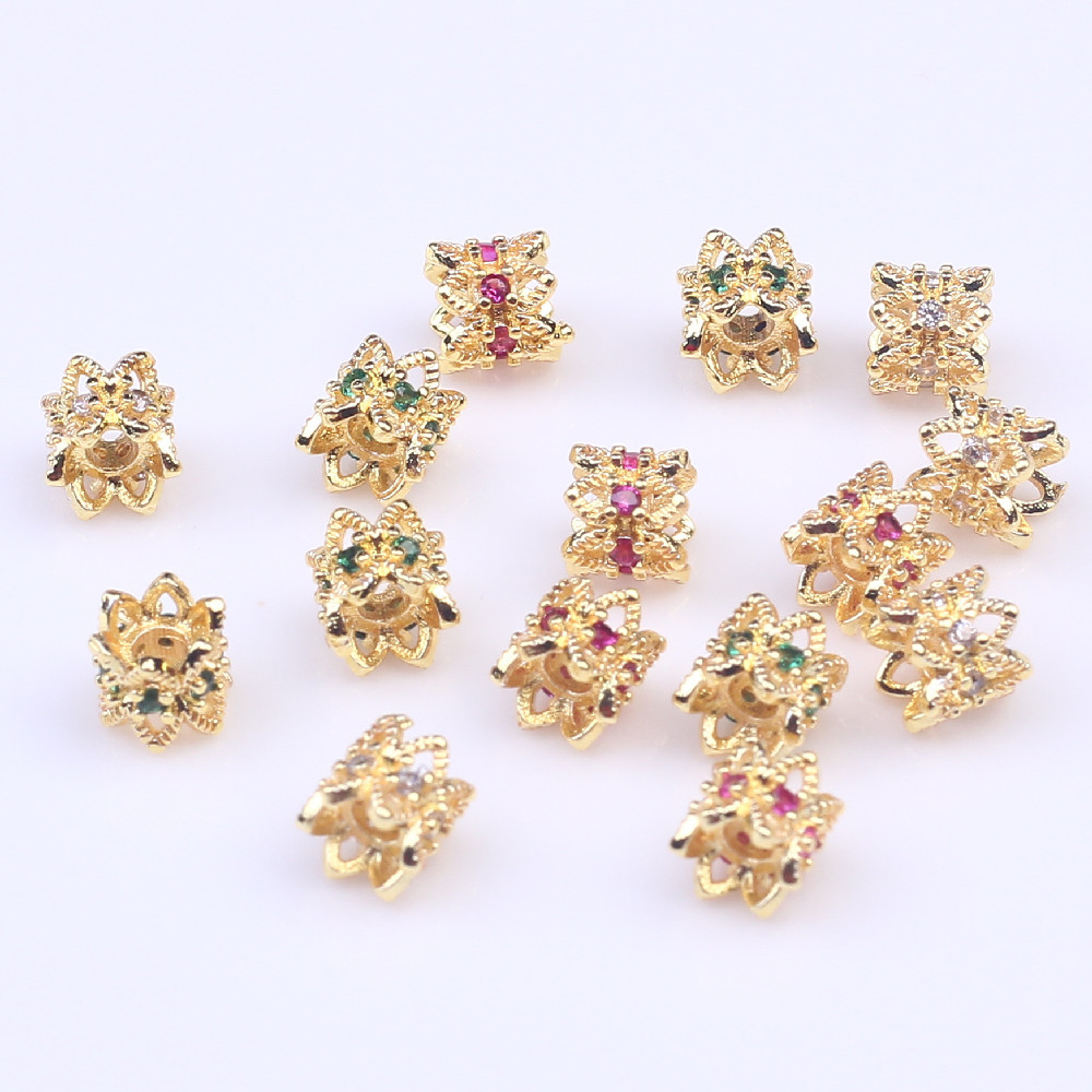 Prás Bead Cap, plátáilte, DIY & micrea réiteach zirconia ciúbach, dathanna níos mó le haghaidh rogha, 5x5mm, Poll:Thart 1.8mm, Díolta De réir PC