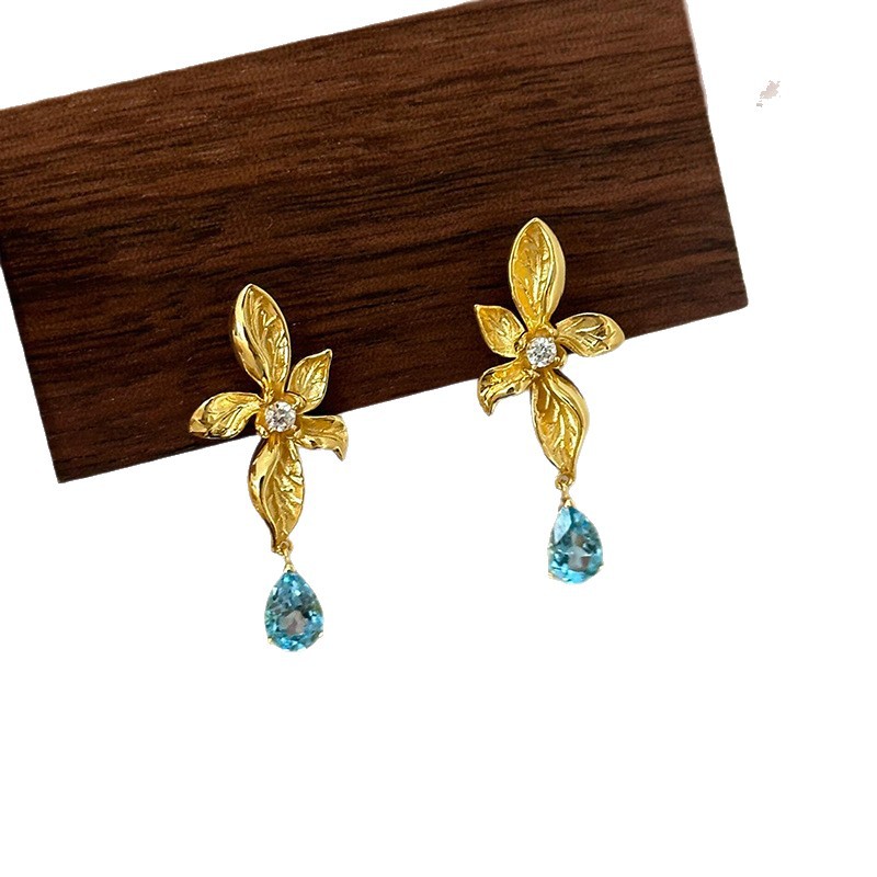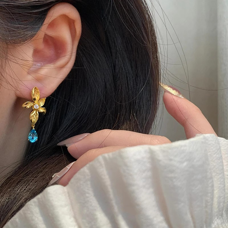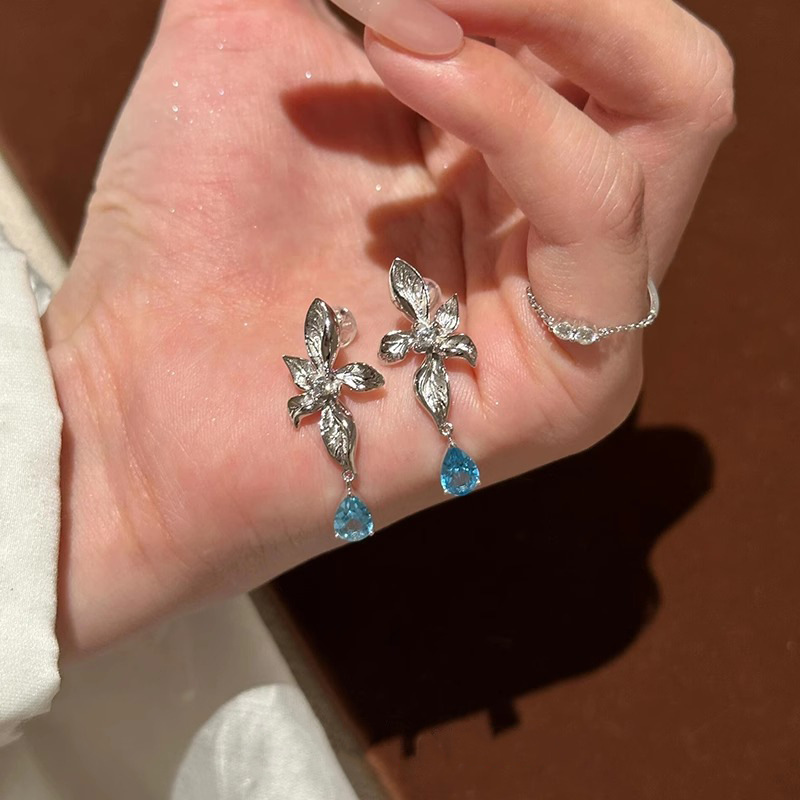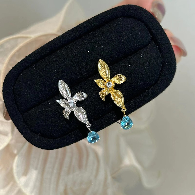Prás Buail Earring, Flower, plátáilte, jewelry faisin & le rhinestone, dathanna níos mó le haghaidh rogha, nicil, luaidhe & caidmiam saor in aisce, 13x31.70mm, Díolta De réir Péire