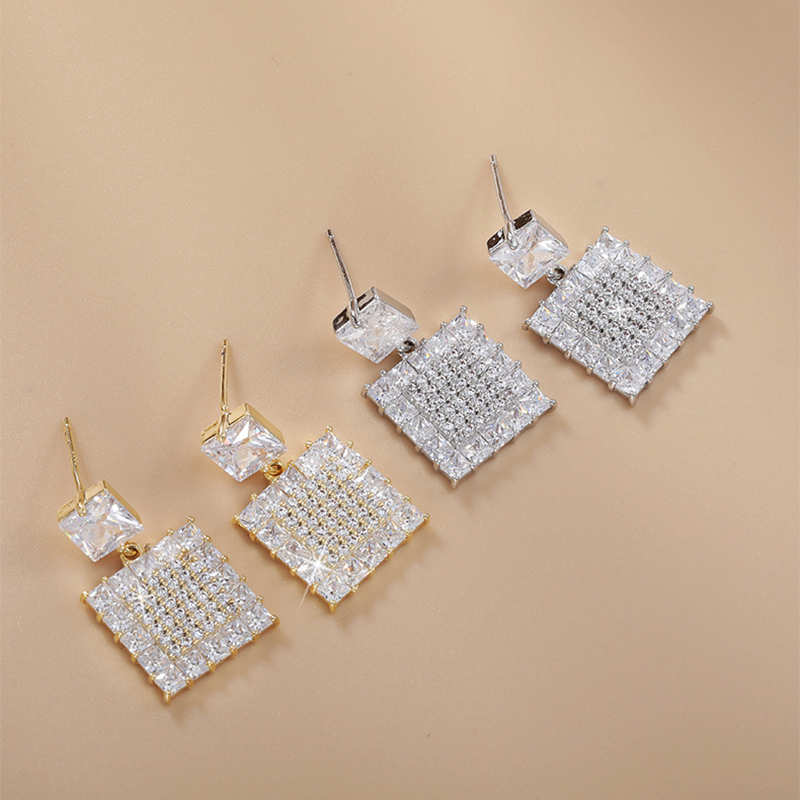 Prás Buail Earring, Cearnóg, plátáilte, micrea réiteach zirconia ciúbach & do bhean, dathanna níos mó le haghaidh rogha, 13.50x13.50mm, Díolta De réir Péire