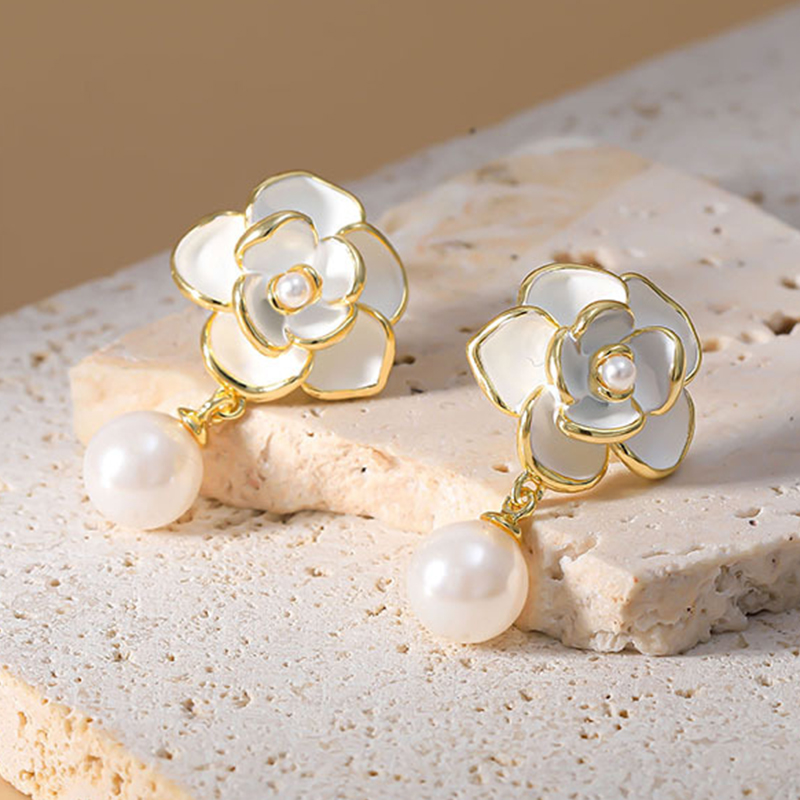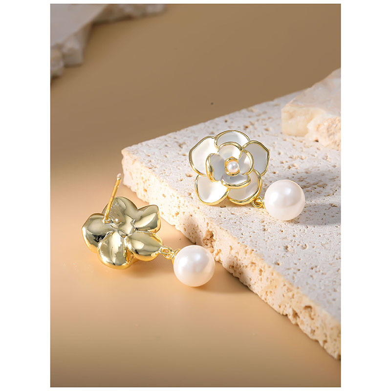 Prás Buail Earring, le Pearl Plaisteacha, Flower, dath an óir plated, do bhean & cruan, 14x25mm, Díolta De réir PC