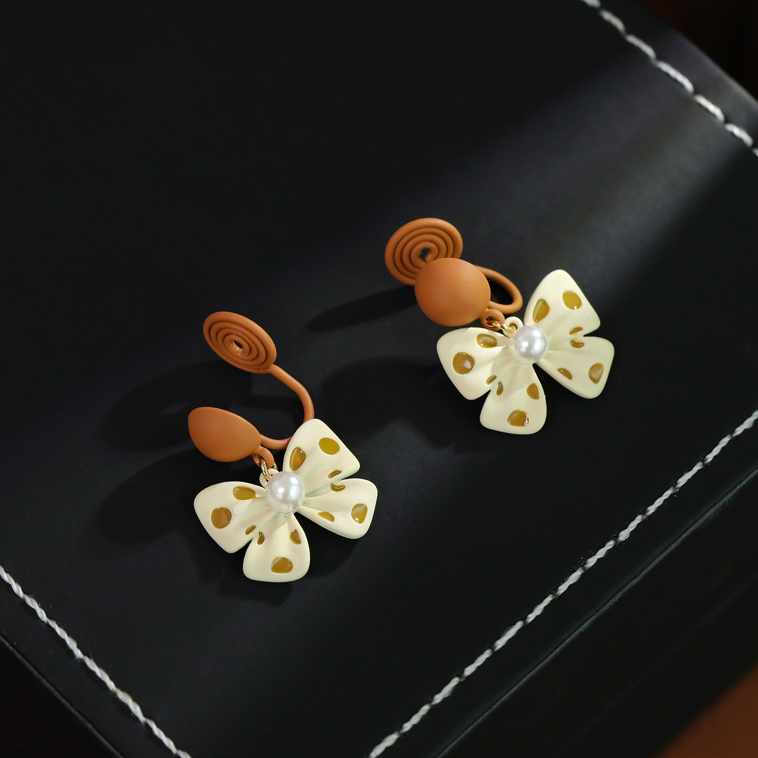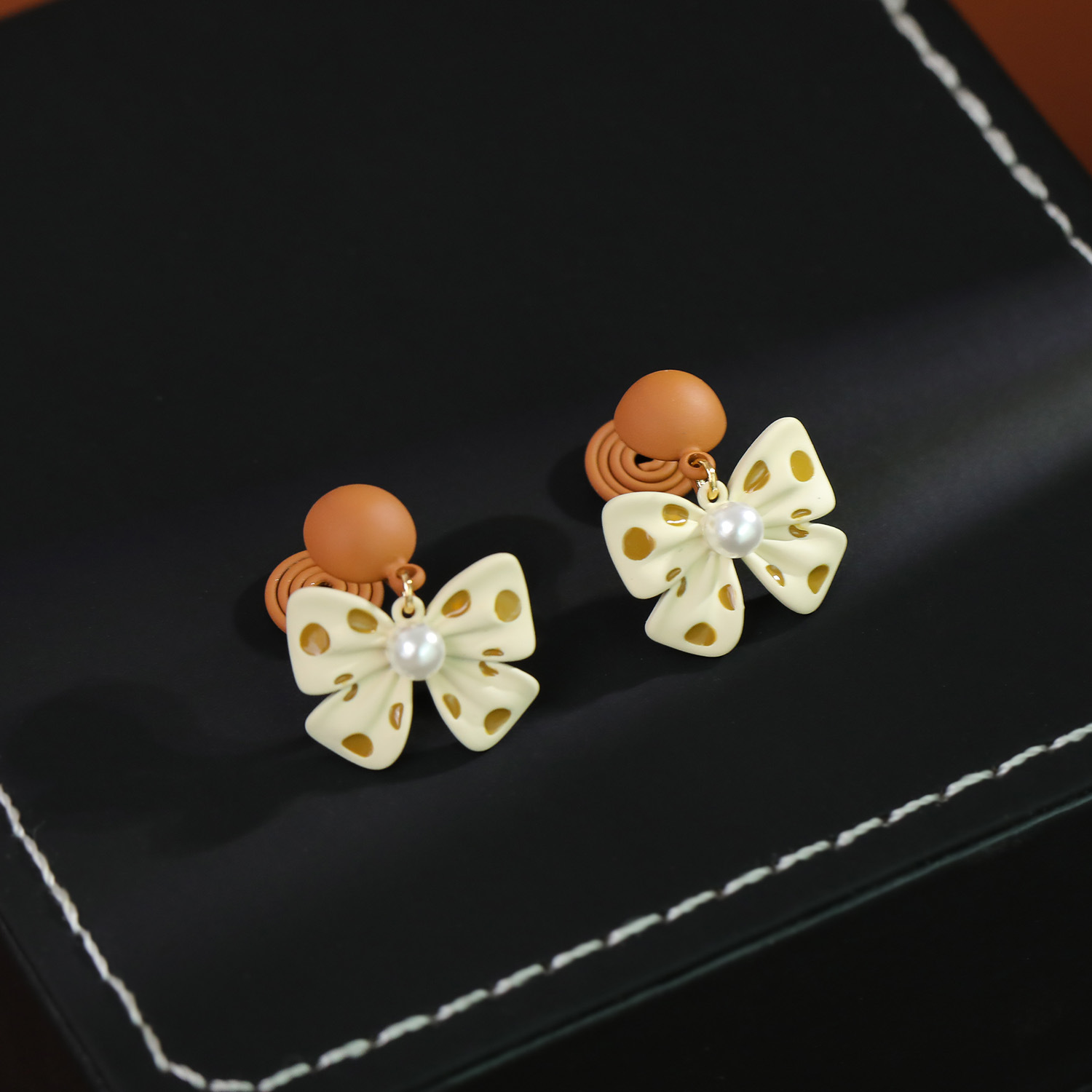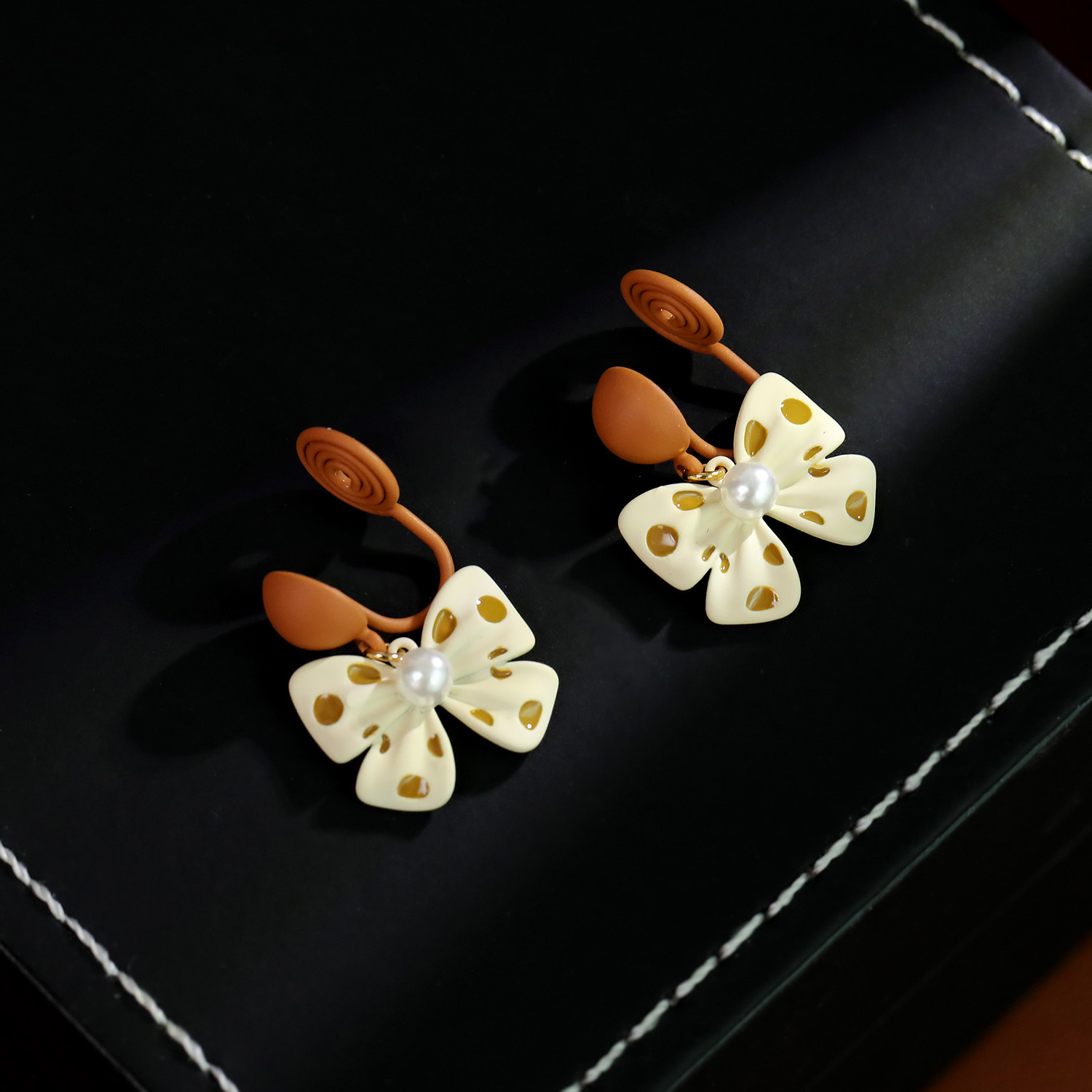 Prás Buail Earring, le Pearl Plaisteacha, Bowknot, péinteáilte, jewelry faisin & do bhean, 22x17mm, Díolta De réir Péire