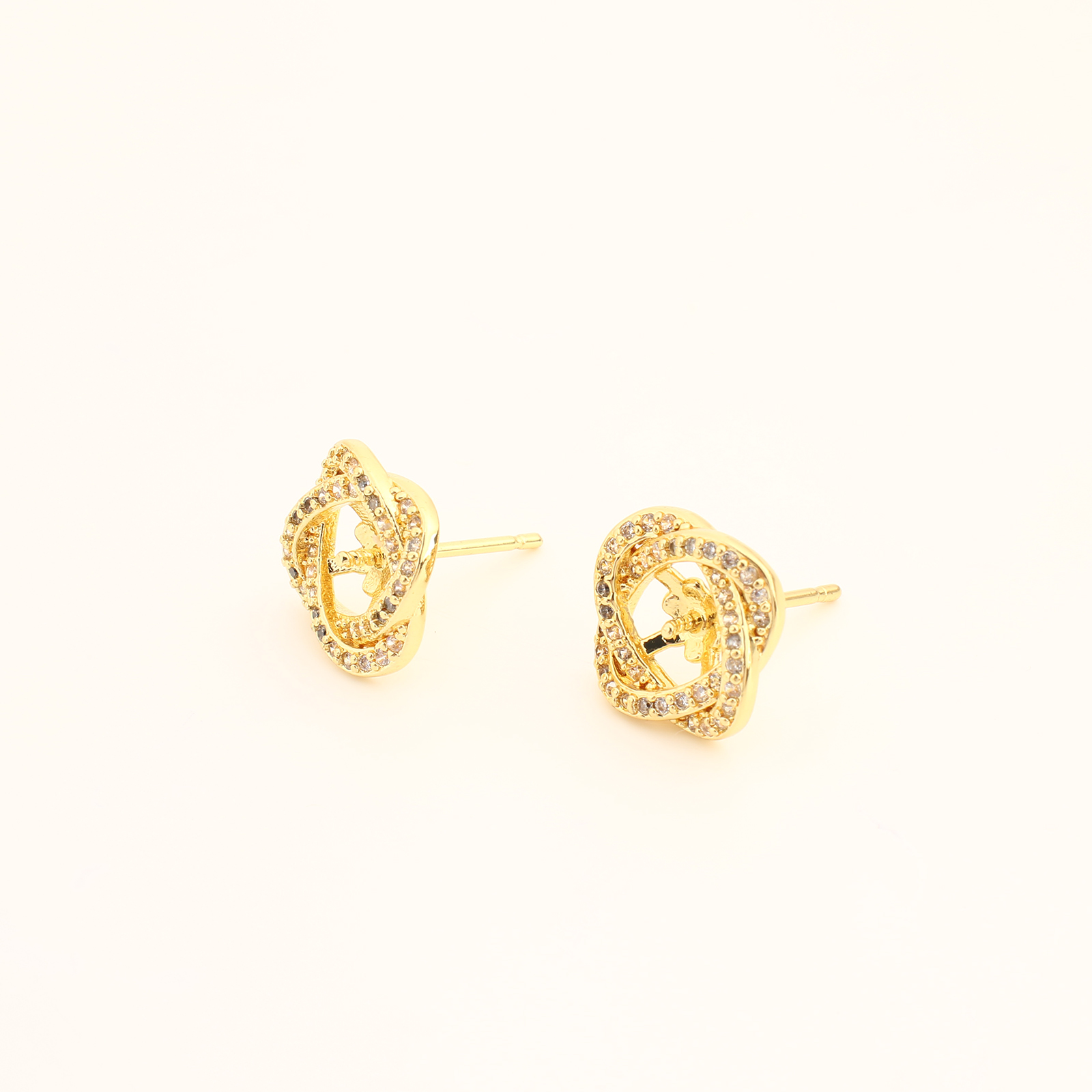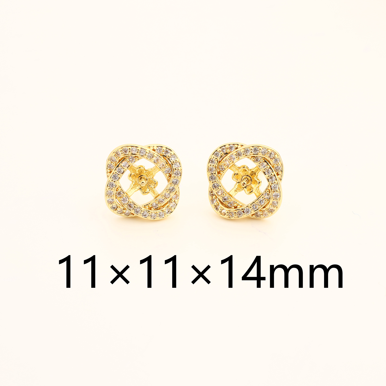 Prás Earring Post, DIY & micrea réiteach zirconia ciúbach & log, dathanna níos mó le haghaidh rogha, 11x11x14mm, Díolta De réir Péire