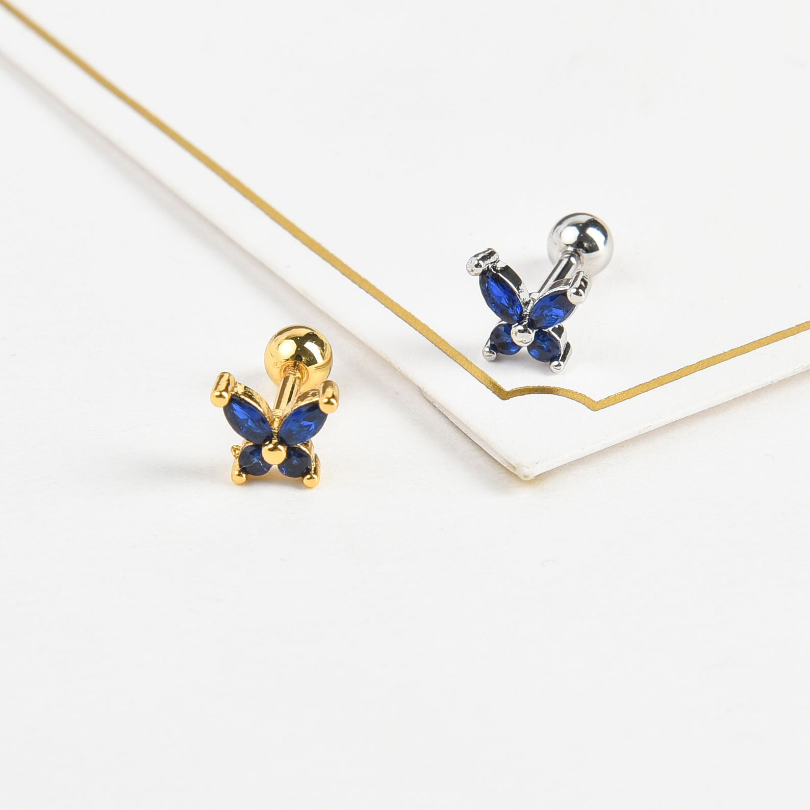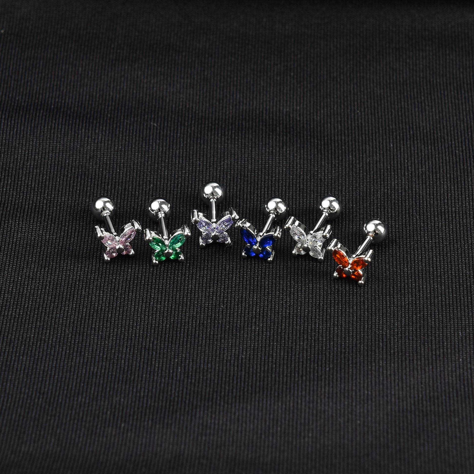 Prás Graí Earring, Féileacán, plátáilte, micrea réiteach zirconia ciúbach & do bhean, dathanna níos mó le haghaidh rogha, 8mm, Díolta De réir PC