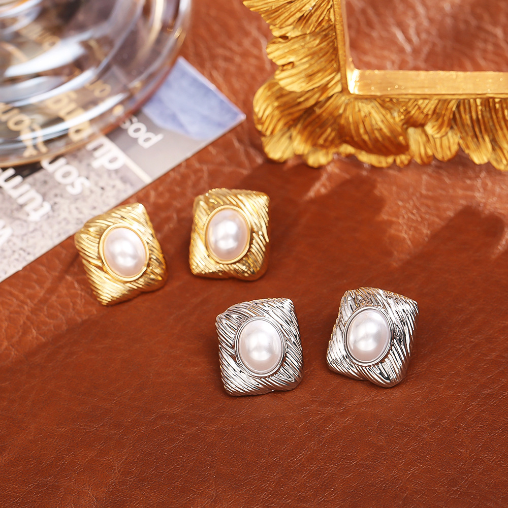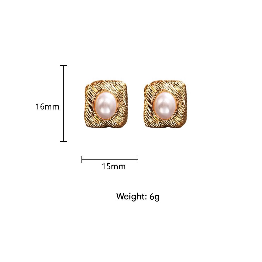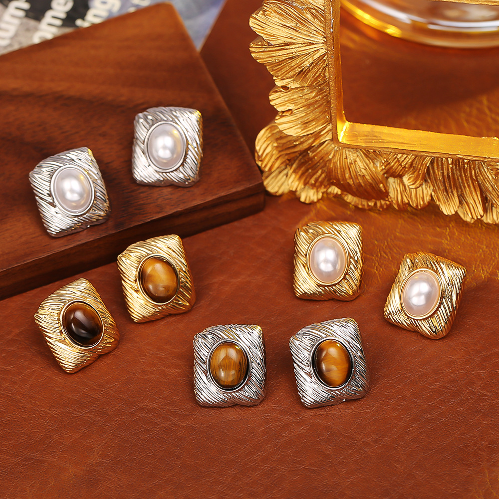 1:Golden tiger eye stone geometric earrings2:Silver tiger eye stone geometric earrings3:Gold pearl geometric stud earrings4:Silver pearl geometric stud earrings