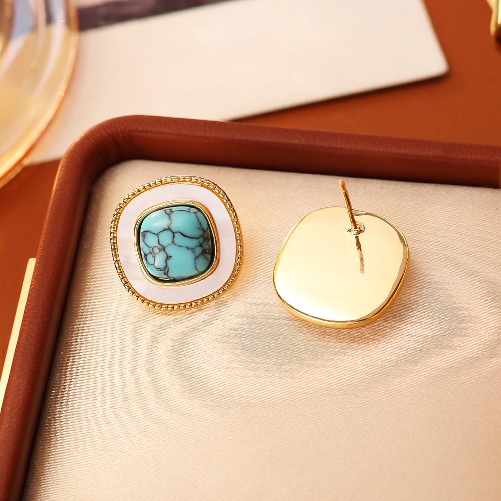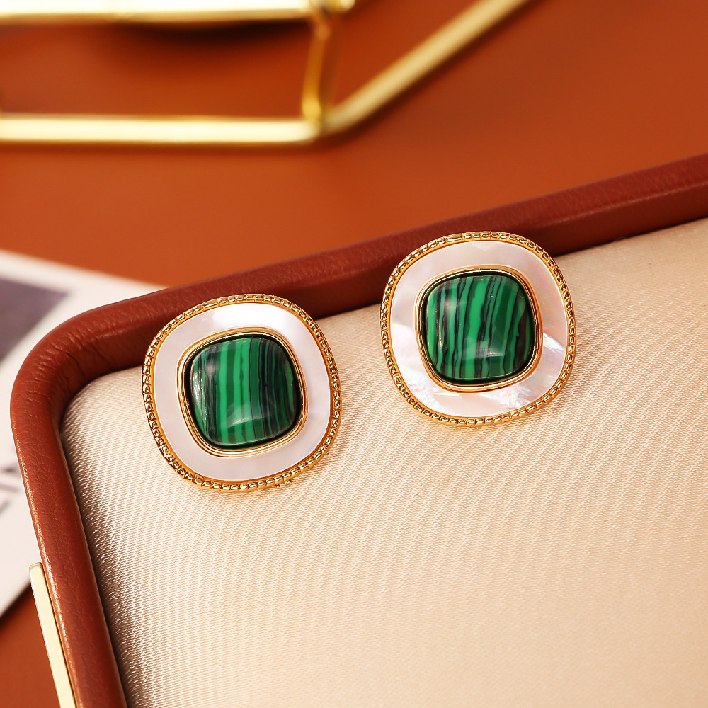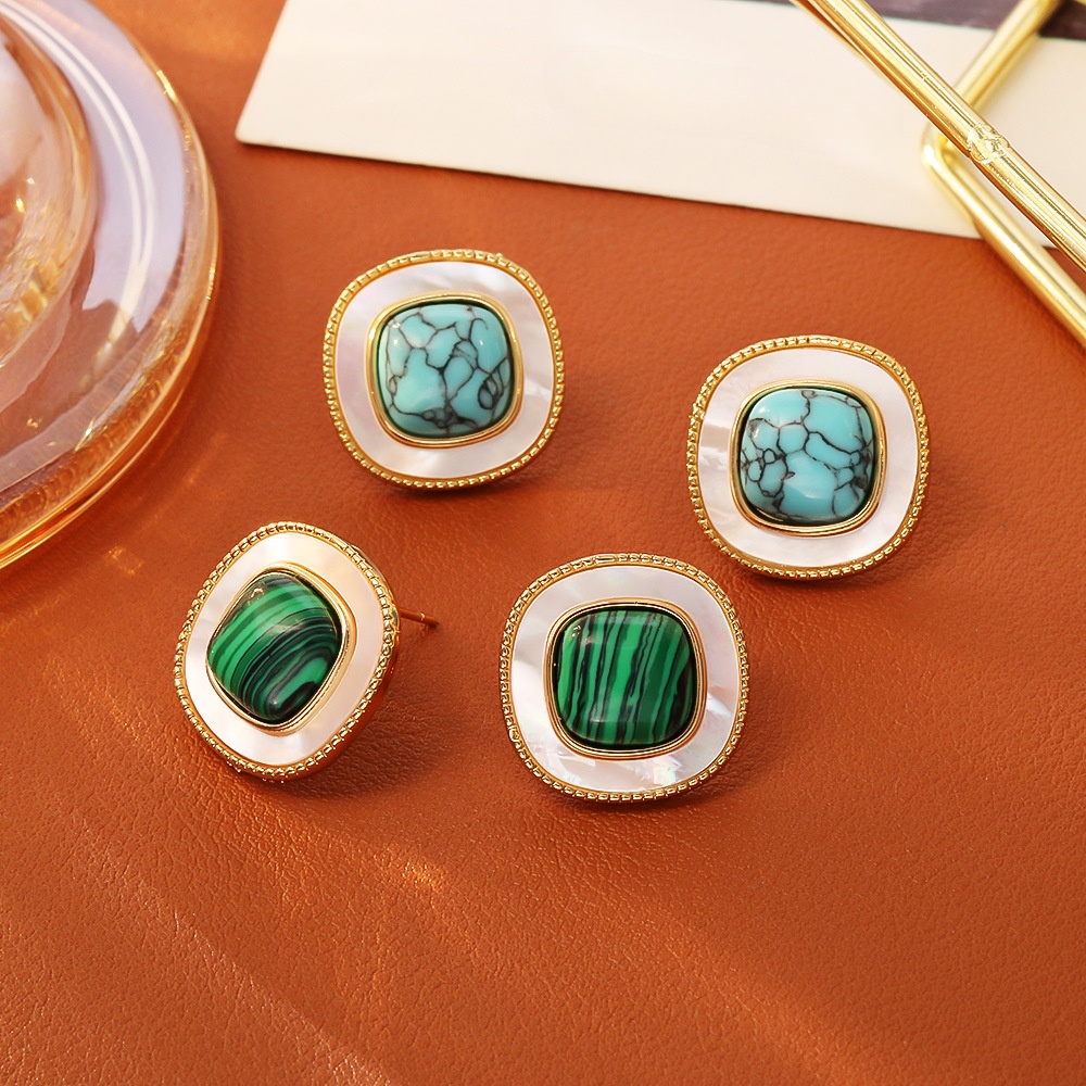 1:Blue turquoise shell stud earrings2:Malachite shell stud earrings