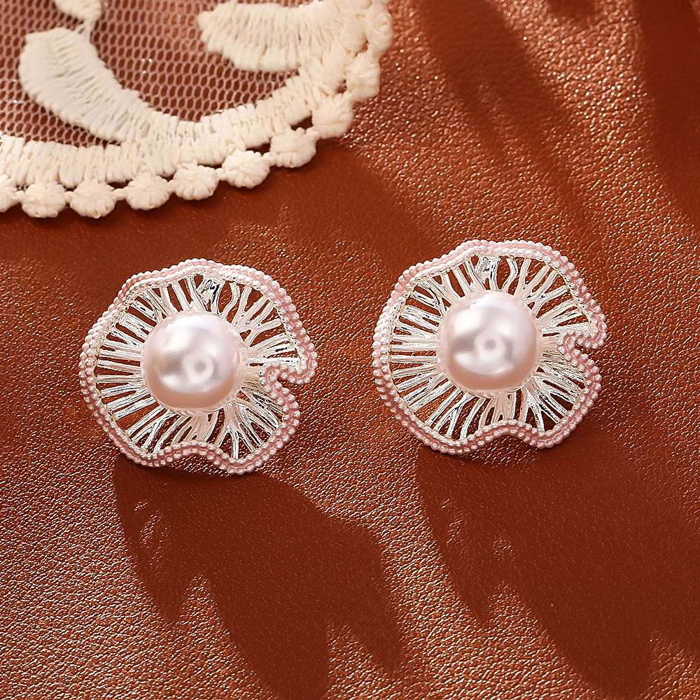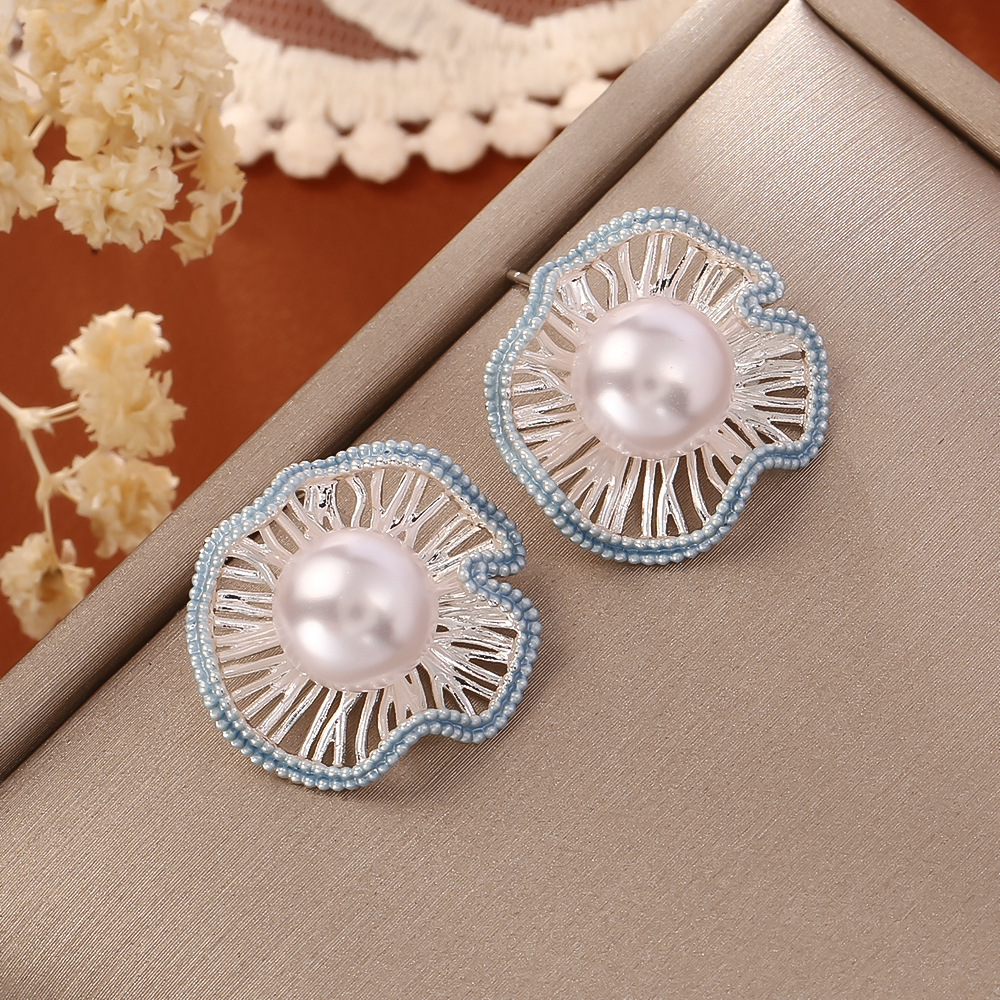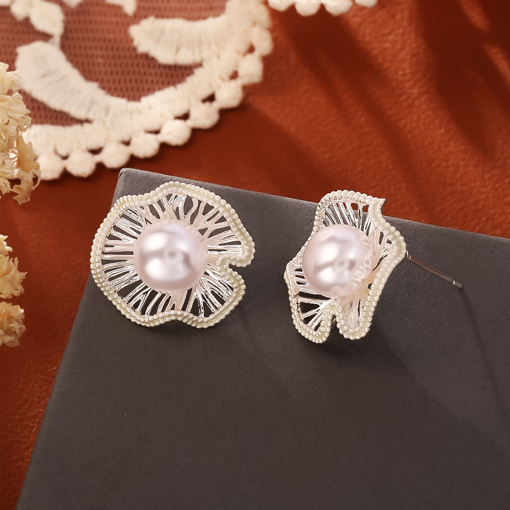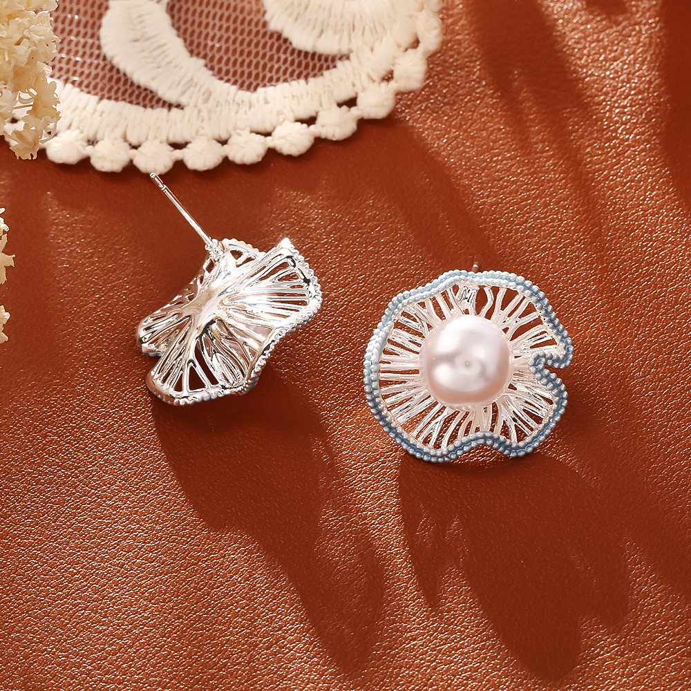 Prás Graí Earring, le Pearl Plaisteacha, Lotus Leaf, plátáilte, do bhean & cruan & log, dathanna níos mó le haghaidh rogha, Díolta De réir Péire