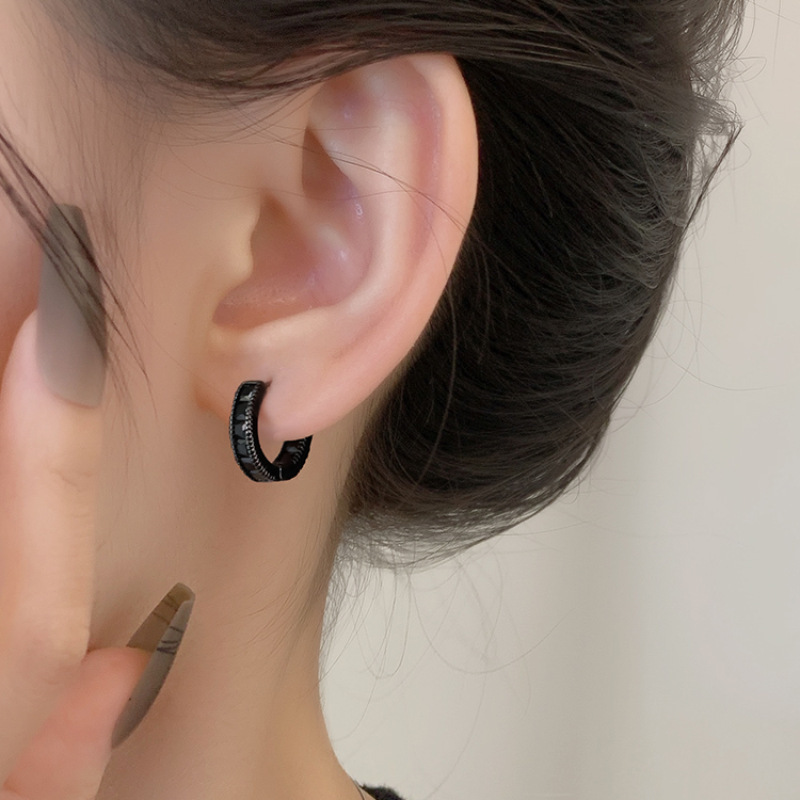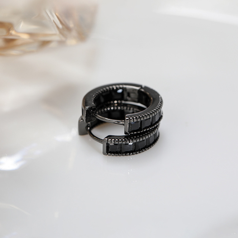 Prás Huggie fonsa Earring, plátáilte, jewelry faisin & micrea réiteach zirconia ciúbach, dubh, nicil, luaidhe & caidmiam saor in aisce, 17.80x16.80mm, Díolta De réir Péire