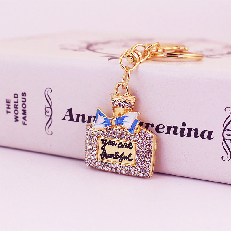 Príomh Slabhra, Sinc Alloy, Buidéal chumhrán, dath an óir plated, cruan & le rhinestone, dathanna níos mó le haghaidh rogha, nicil, luaidhe & caidmiam saor in aisce, 35x108mm, Díolta De réir PC