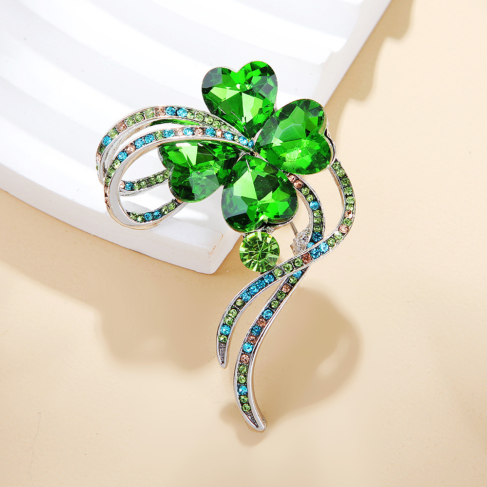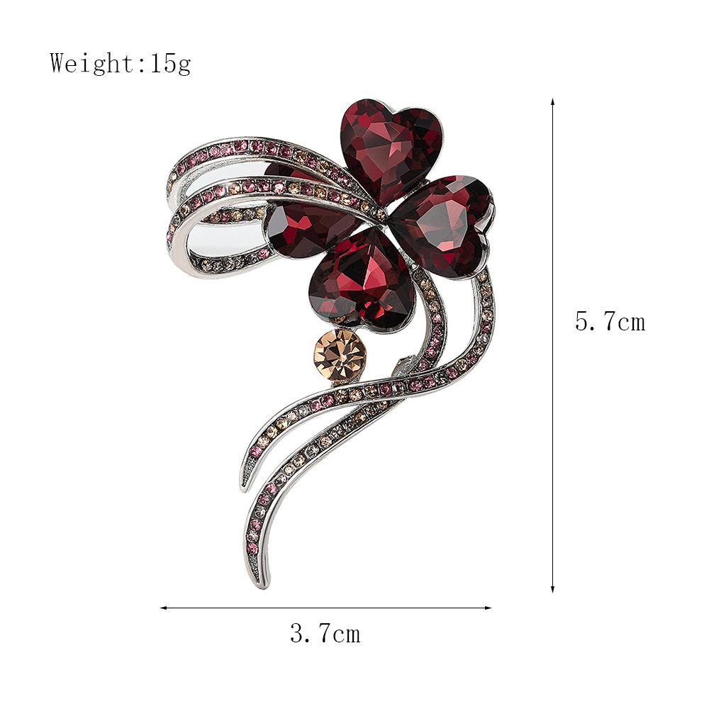 Rhinestone Dealg, Sinc Alloy, Ceithre Leaf Seamair, plátáilte, do bhean & le rhinestone & log, dathanna níos mó le haghaidh rogha, Díolta De réir PC