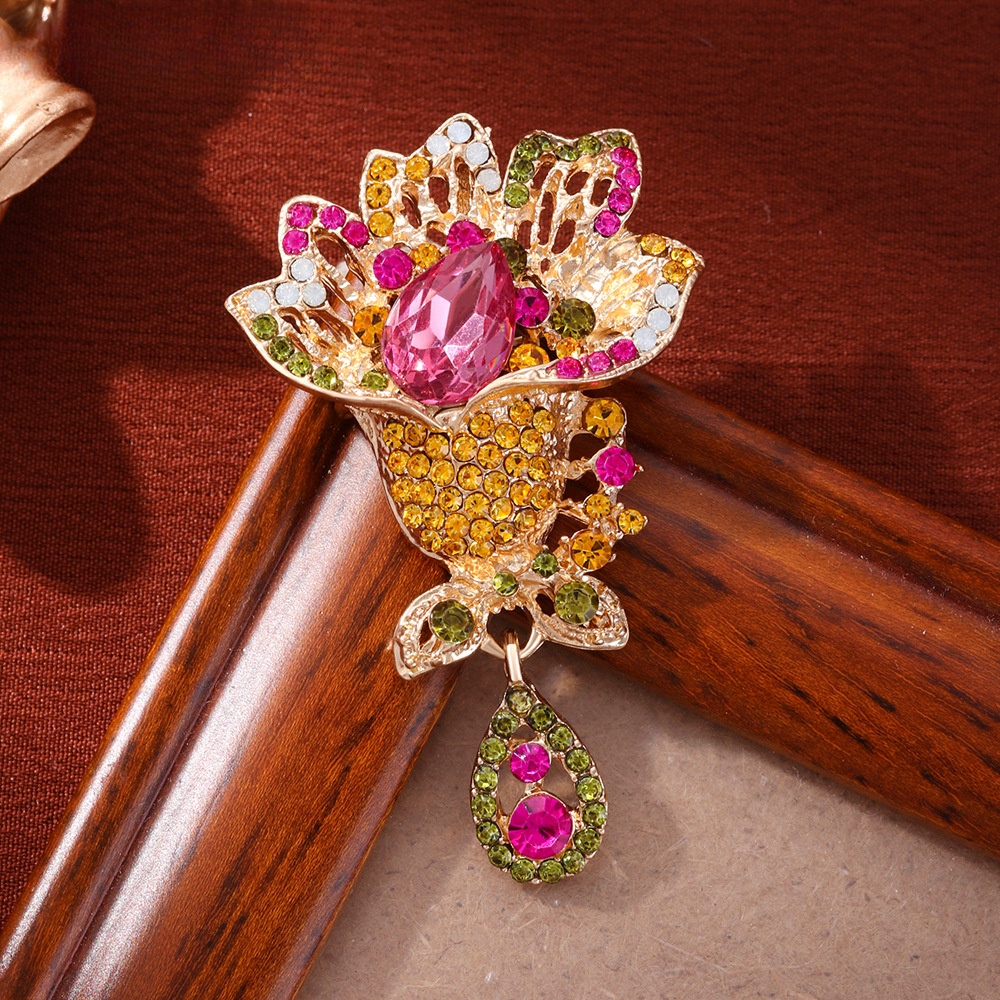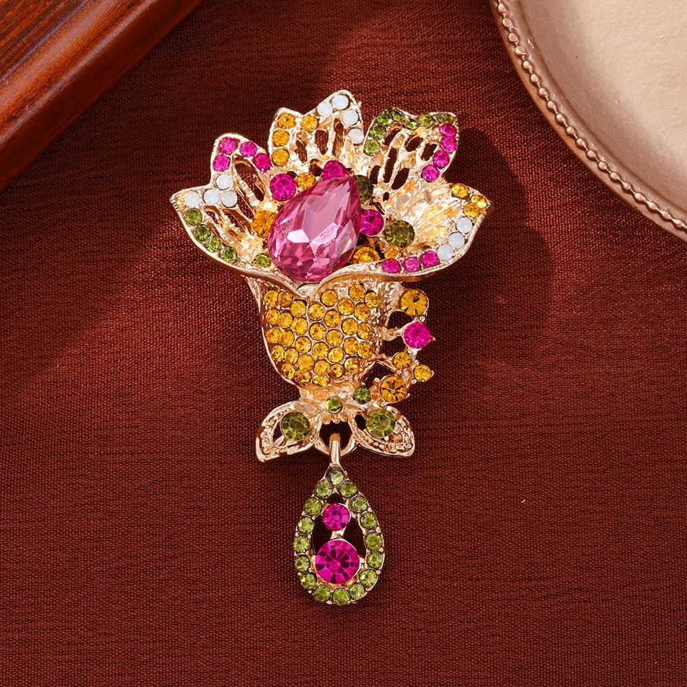 Rhinestone Dealg, Sinc Alloy, Flower, unisex & le rhinestone & log, fuchsia, Díolta De réir PC