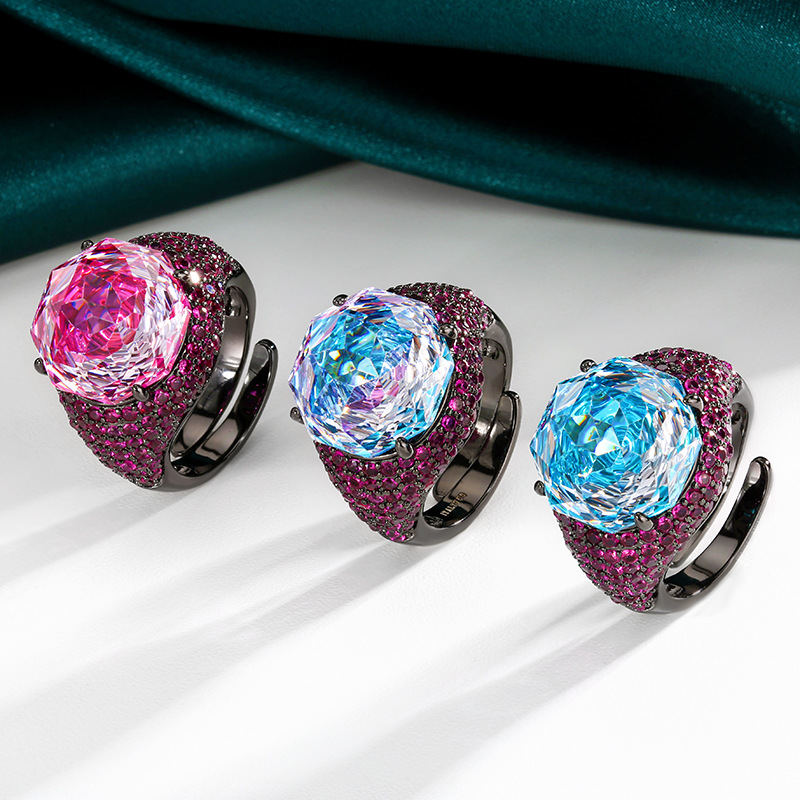 Rhinestone Ring Finger, Prás, le Ciúbach Zirconia, jewelry faisin & do bhean & le rhinestone, dathanna níos mó le haghaidh rogha, Díolta De réir PC
