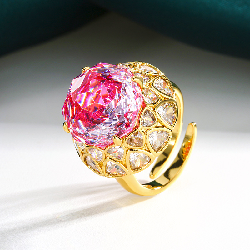 Rhinestone Ring Finger, Prás, le Ciúbach Zirconia, dath an óir plated, jewelry faisin & do bhean & le rhinestone, dathanna níos mó le haghaidh rogha, Díolta De réir PC