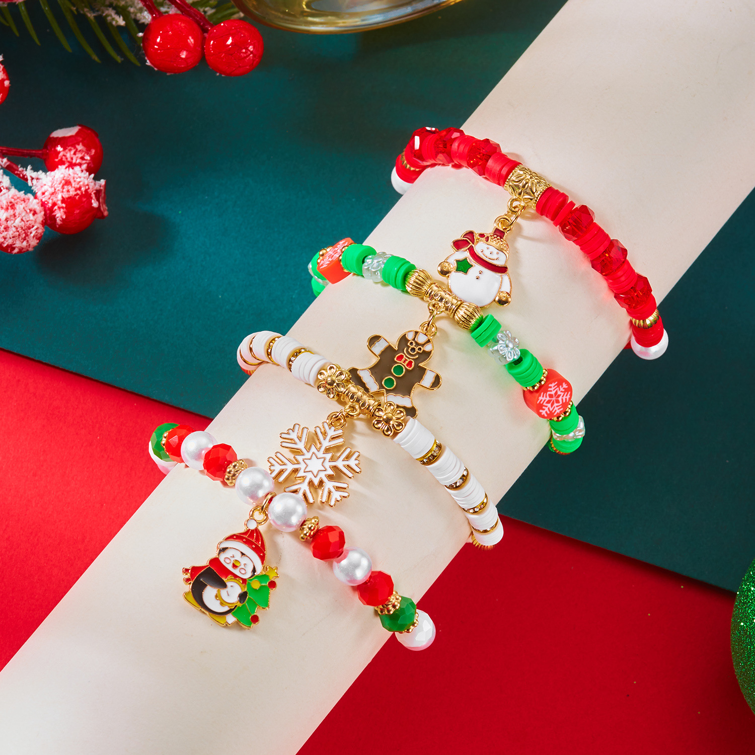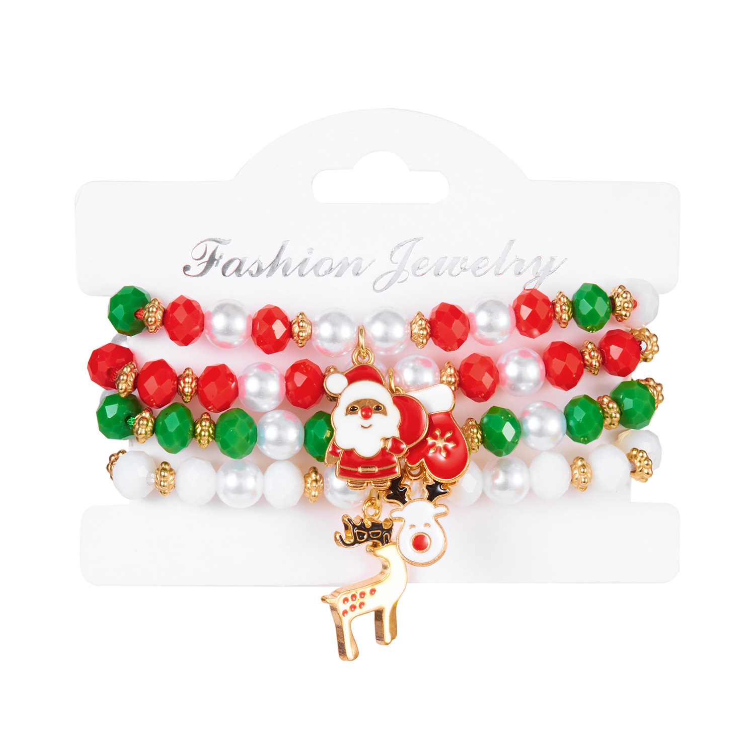 Saoire na Nollag Bracelet, Sinc Alloy, le Seedbead & Pearl Plaisteacha, dath an óir plated, Dearadh na Nollag & cruan, dathanna níos mó le haghaidh rogha, 4ríomhairí pearsanta/Socraigh, Díolta De réir Socraigh
