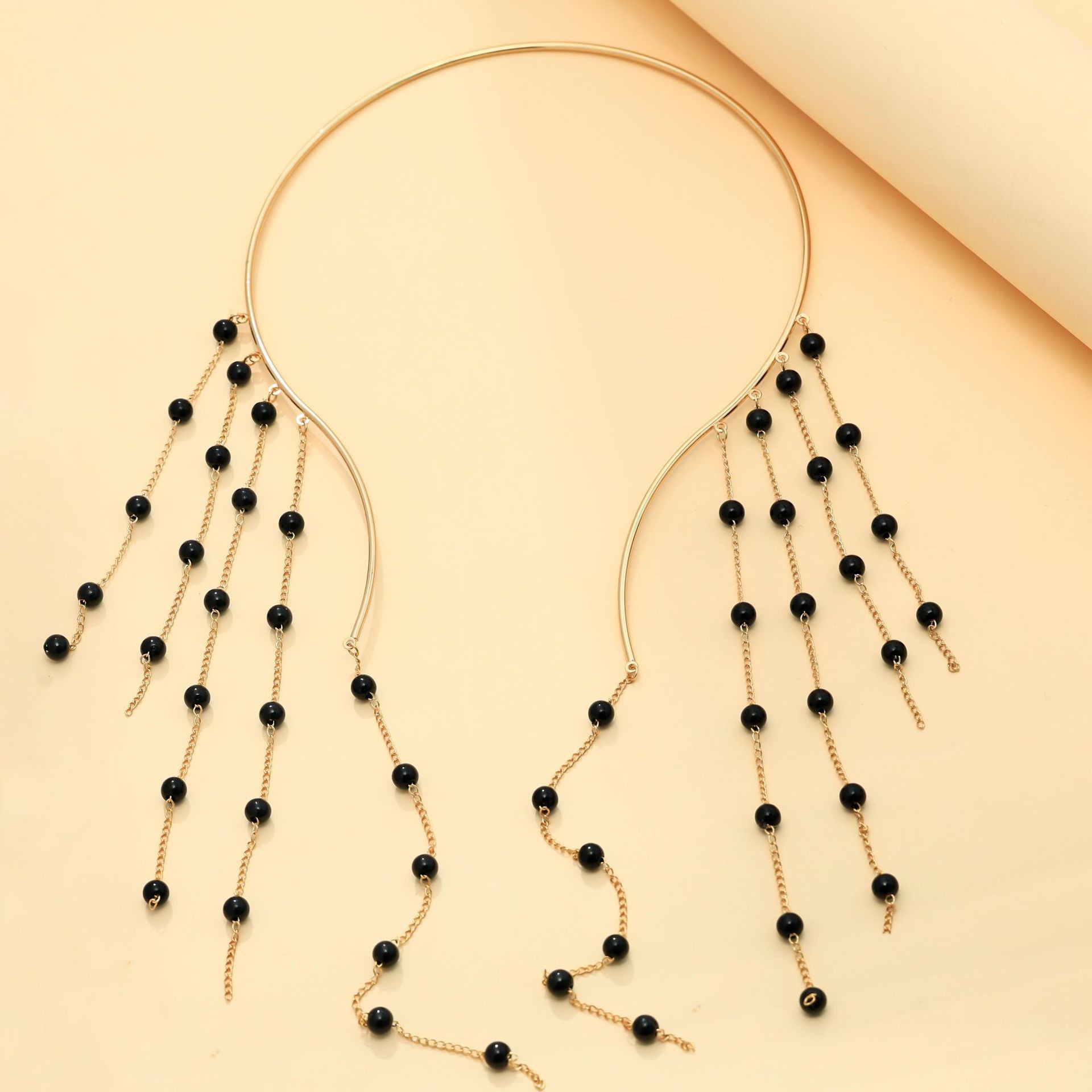 Sinc Alloy Collar, le Pearl Plaisteacha, tassel, dath an óir plated, stíl tíre & do bhean, Díolta De réir PC