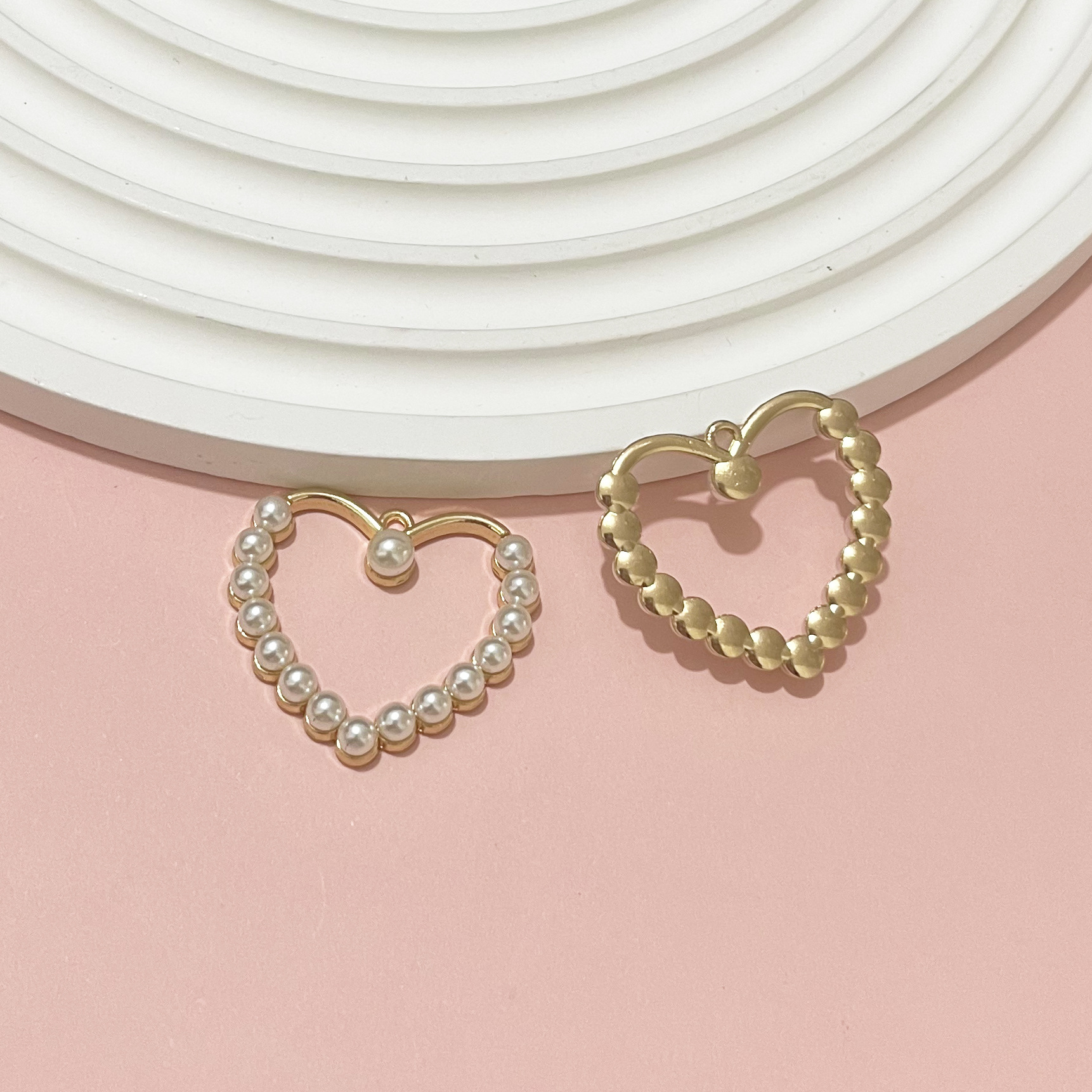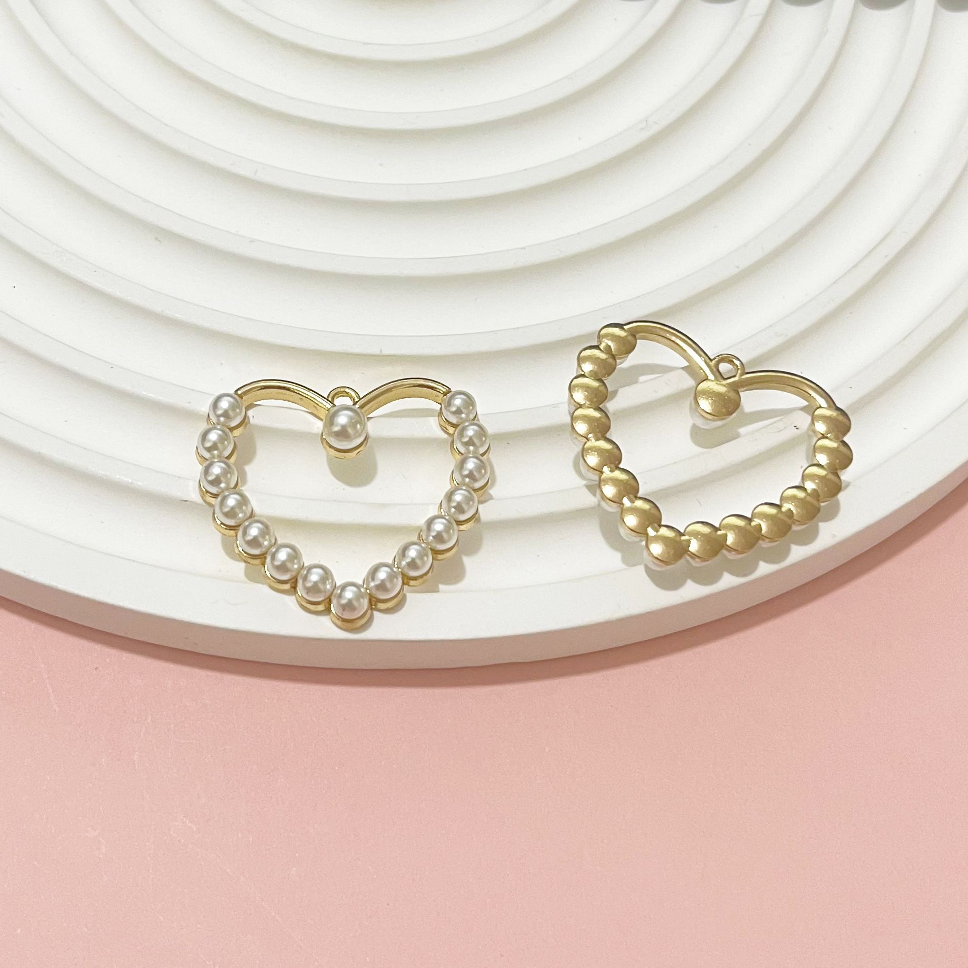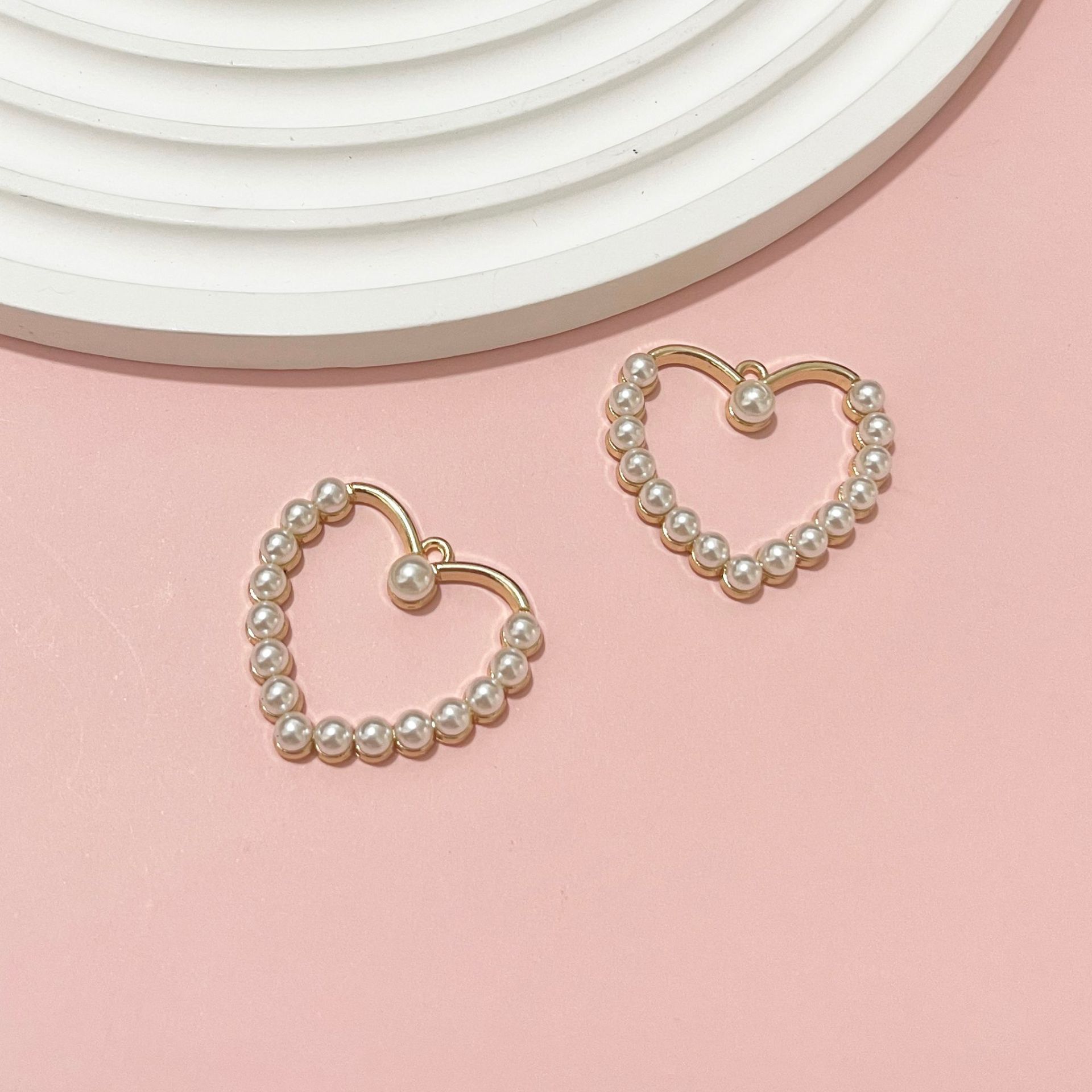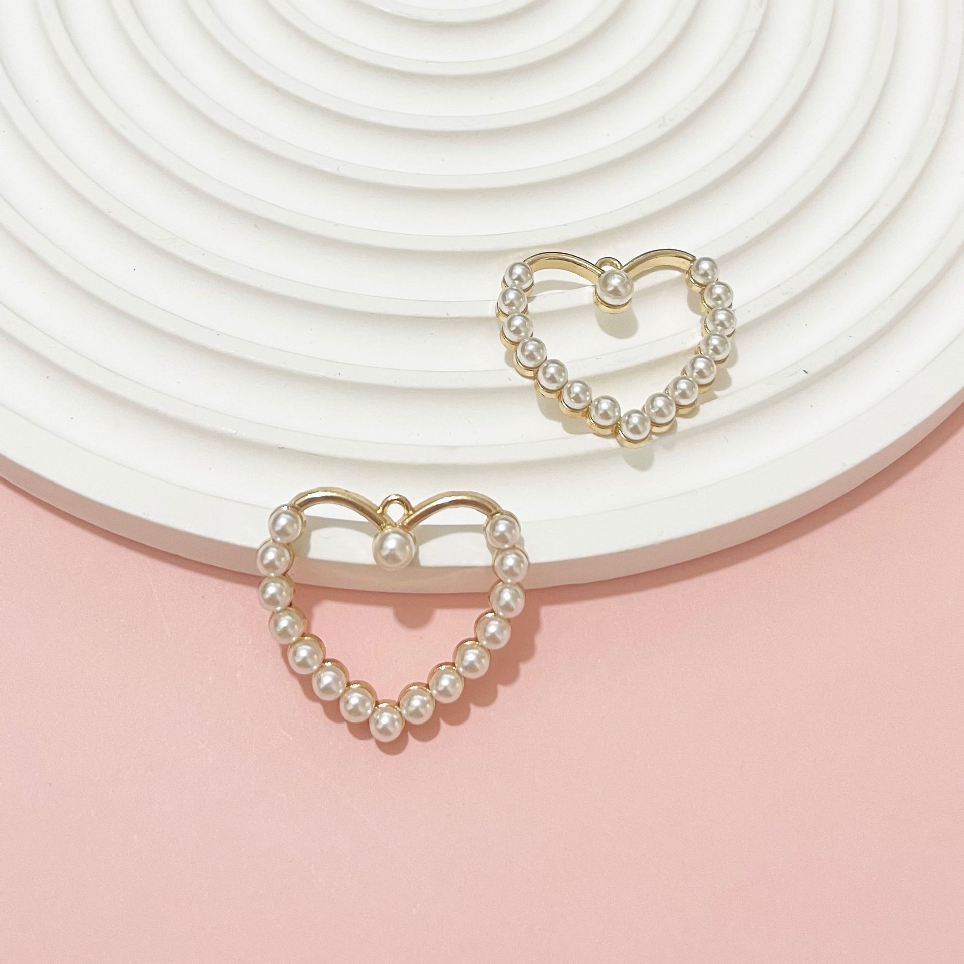 Sinc Alloy Croí Pendants, le Pearl Plaisteacha, dath an óir plated, DIY & log, órga, 30x33mm, 100ríomhairí pearsanta/Mála, Díolta De réir Mála