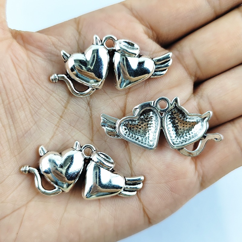 Sinc Alloy Croí Pendants, dath airgid plated, DIY, 100ríomhairí pearsanta/Mála, Díolta De réir Mála