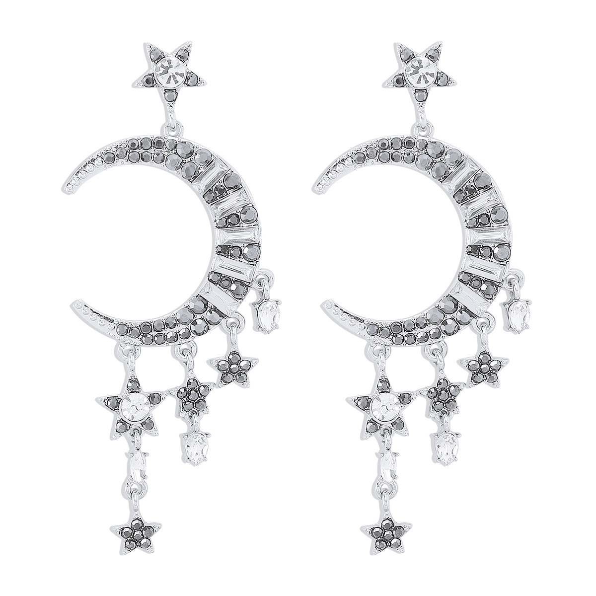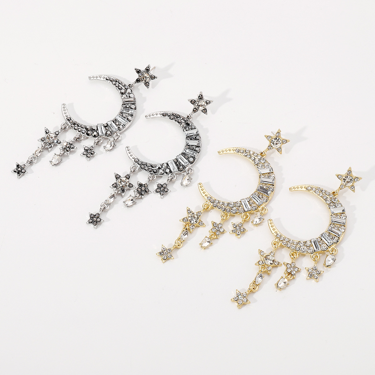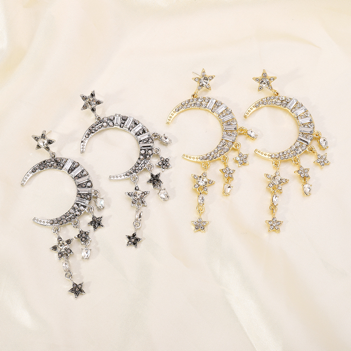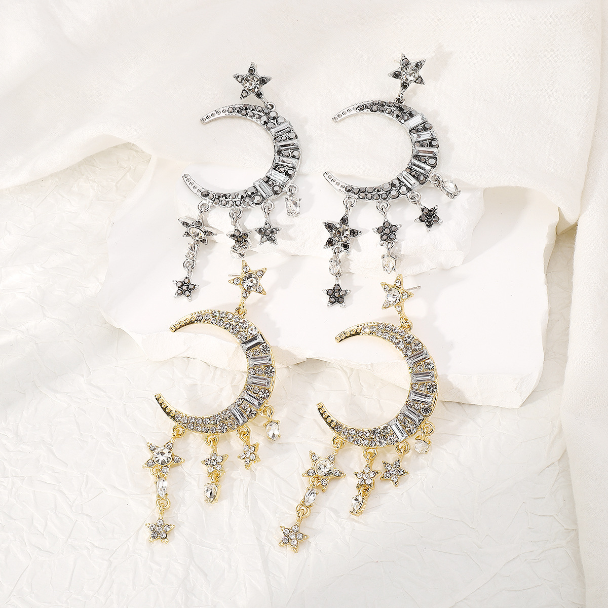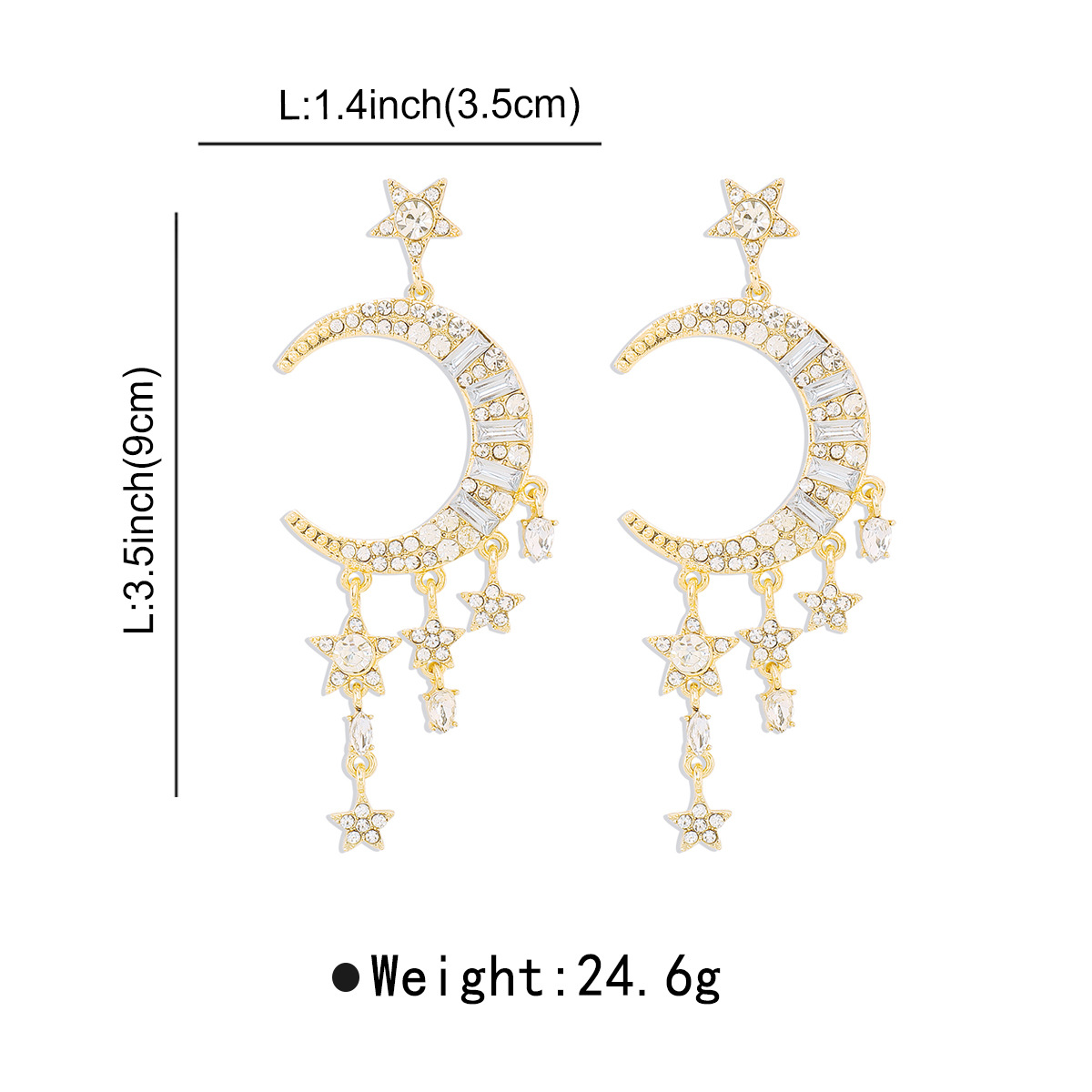 Sinc Alloy Earrings, Moon agus Star, plátáilte, jewelry faisin & do bhean & le rhinestone, dathanna níos mó le haghaidh rogha, Díolta De réir Péire