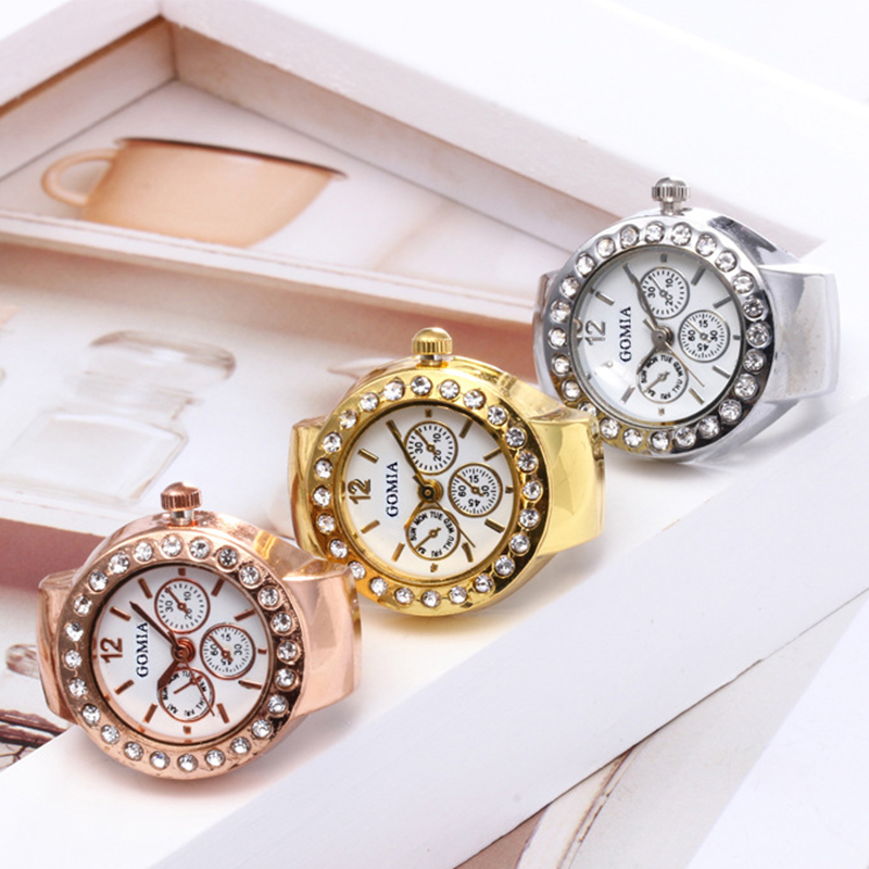 Sinc Alloy Finger Ring Watch, le Gloine, Babhta, plátáilte, unisex & stíleanna éagsúla do rogha & le rhinestone, 20mm, Méid:6-8, Díolta De réir PC