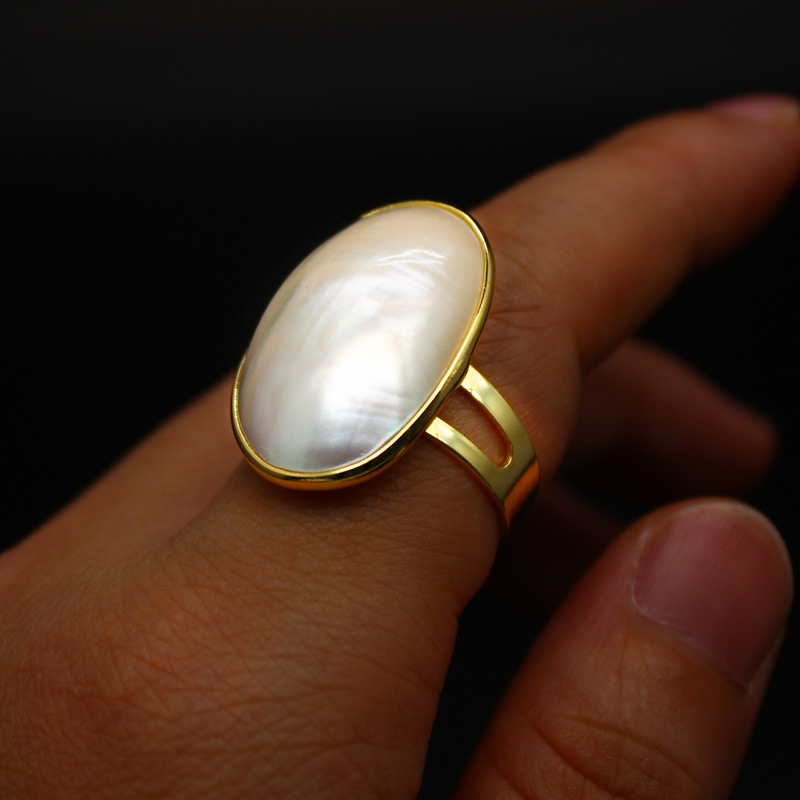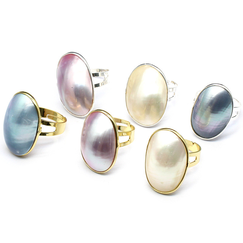 Sinc Alloy Finger Ring, le Mabe Pearl, jewelry faisin, dathanna níos mó le haghaidh rogha, 19x29mm, Díolta De réir PC