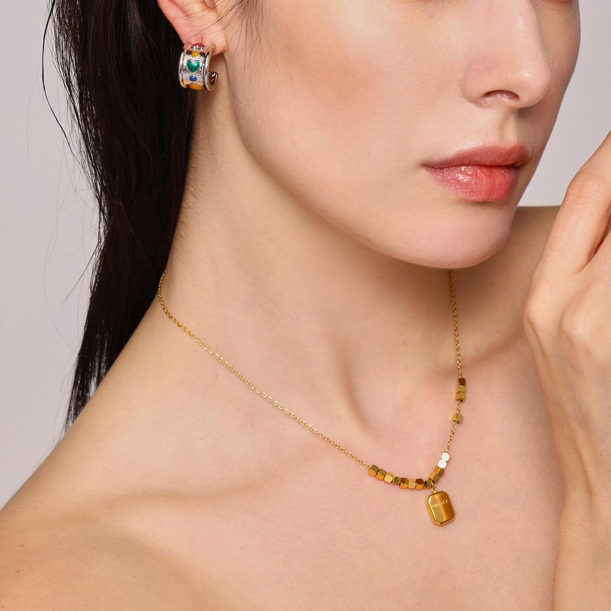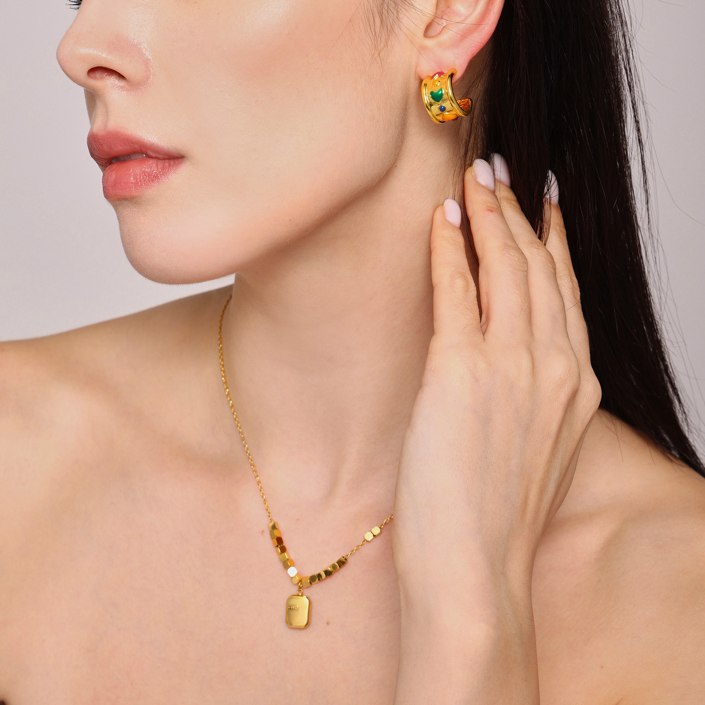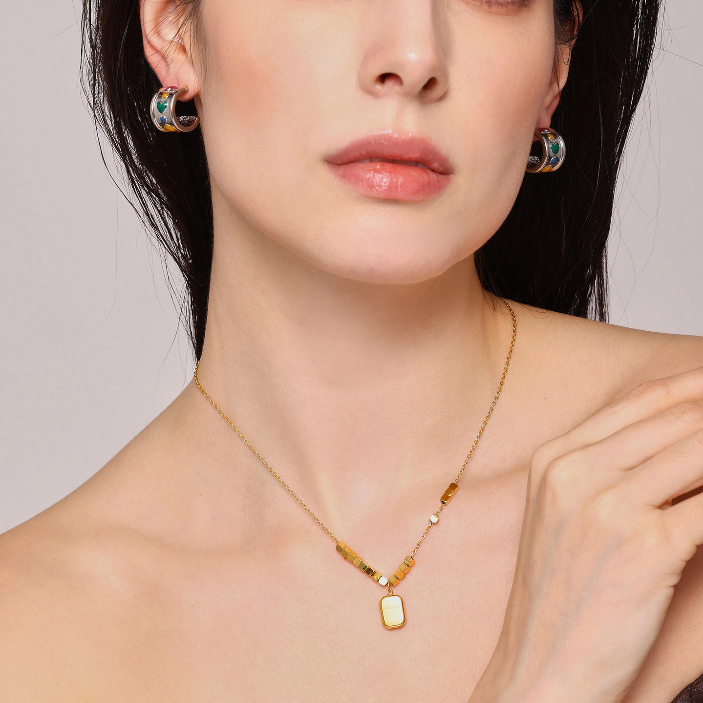 1:F1709-Gold Earrings2:F1709-Steel earrings3:P1358-gold necklace -40 5cm