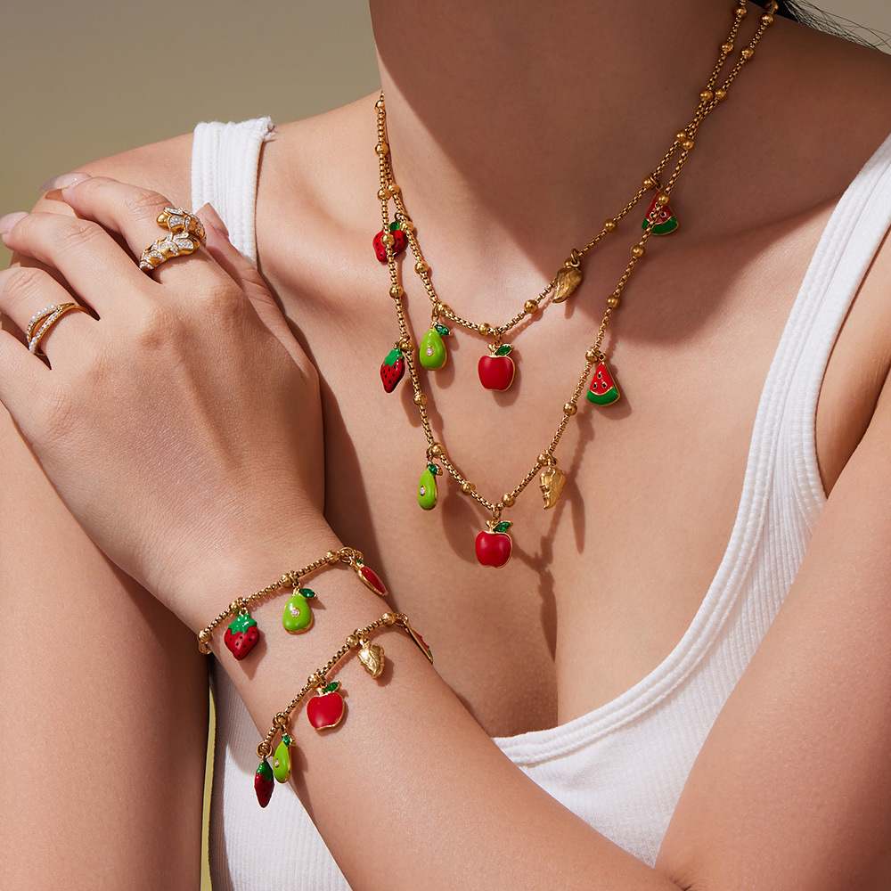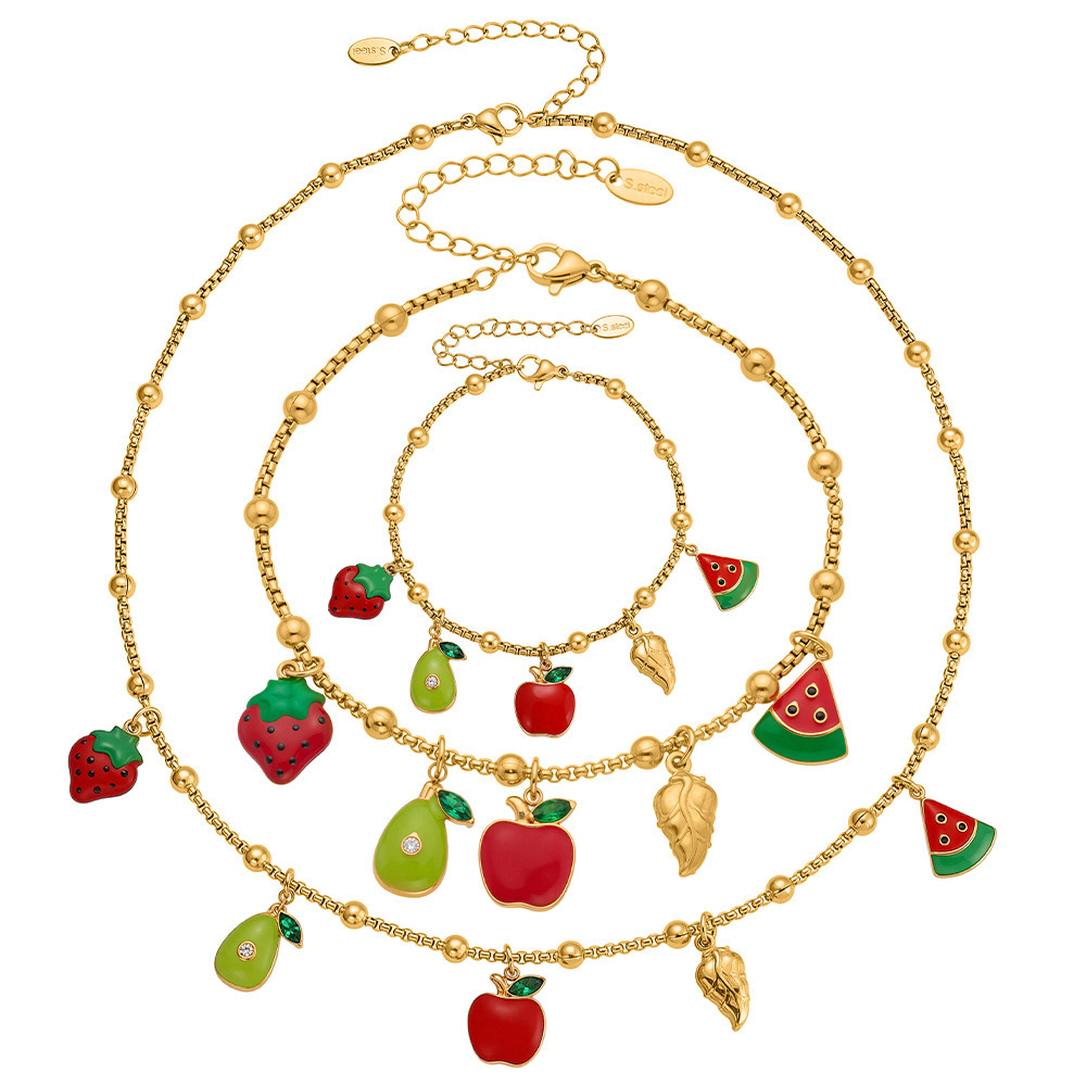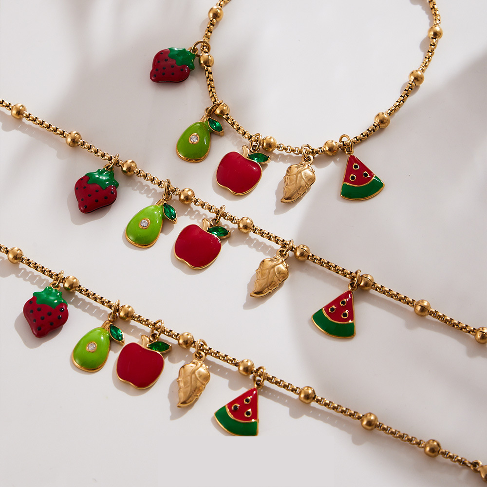 Sraith Jewelry Cruach Dhosmálta Enamel, anklet & bracelet & muince, 304 Cruach dhosmálta, dath an óir plated, jewelry faisin & micrea réiteach zirconia ciúbach & cruan, dathanna níos mó le haghaidh rogha, Díolta De réir PC