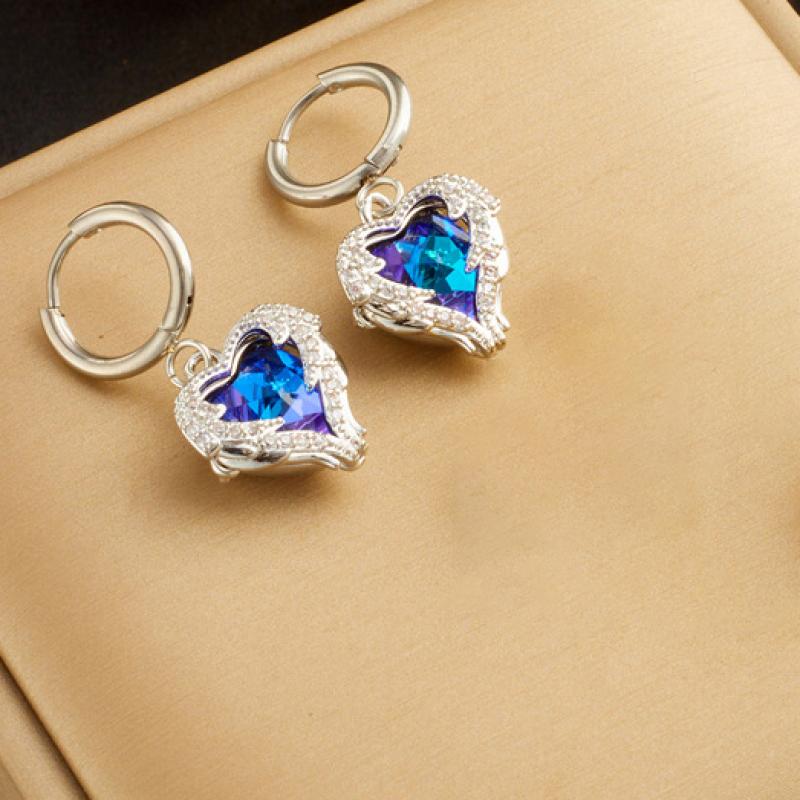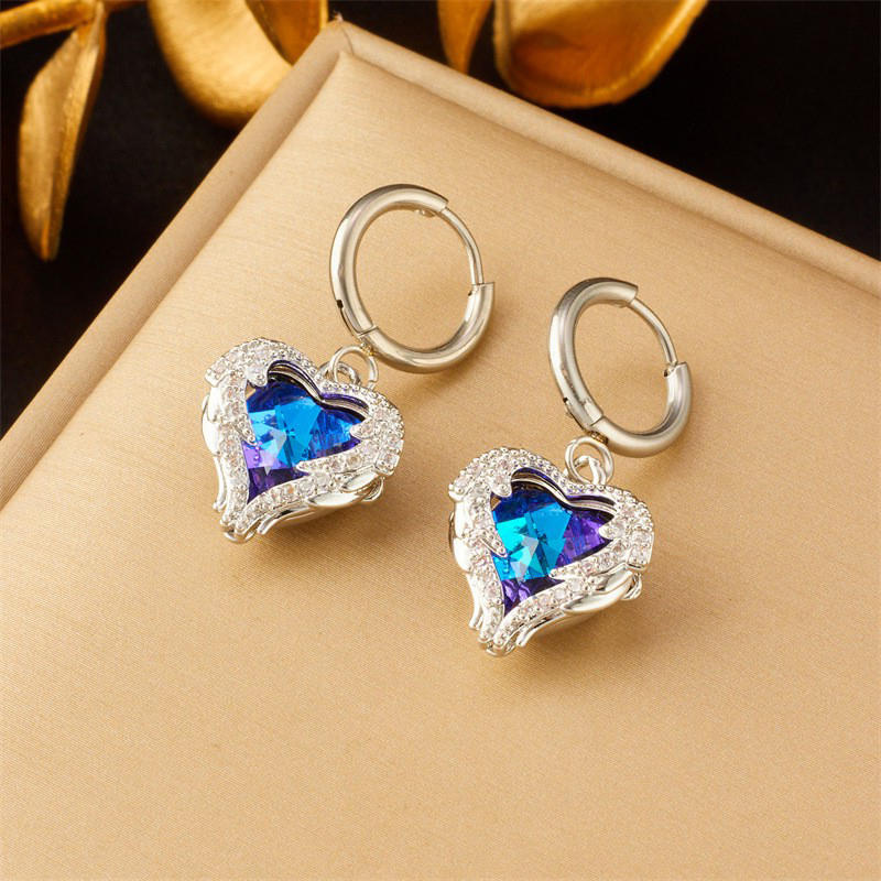 Tíotáiniam Cruach Earring, Cruach Tíotáiniam, Croí, plátáilte, jewelry faisin & do bhean & le rhinestone, dath bunaidh, 30mm, Díolta De réir Péire