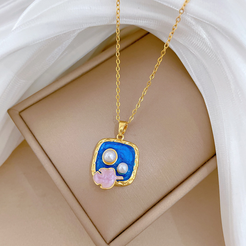 Tíotáiniam Cruach muince, Cruach Tíotáiniam, le Pearl Plaisteacha & Prás, jewelry faisin & do bhean & cruan, órga, Díolta De réir PC