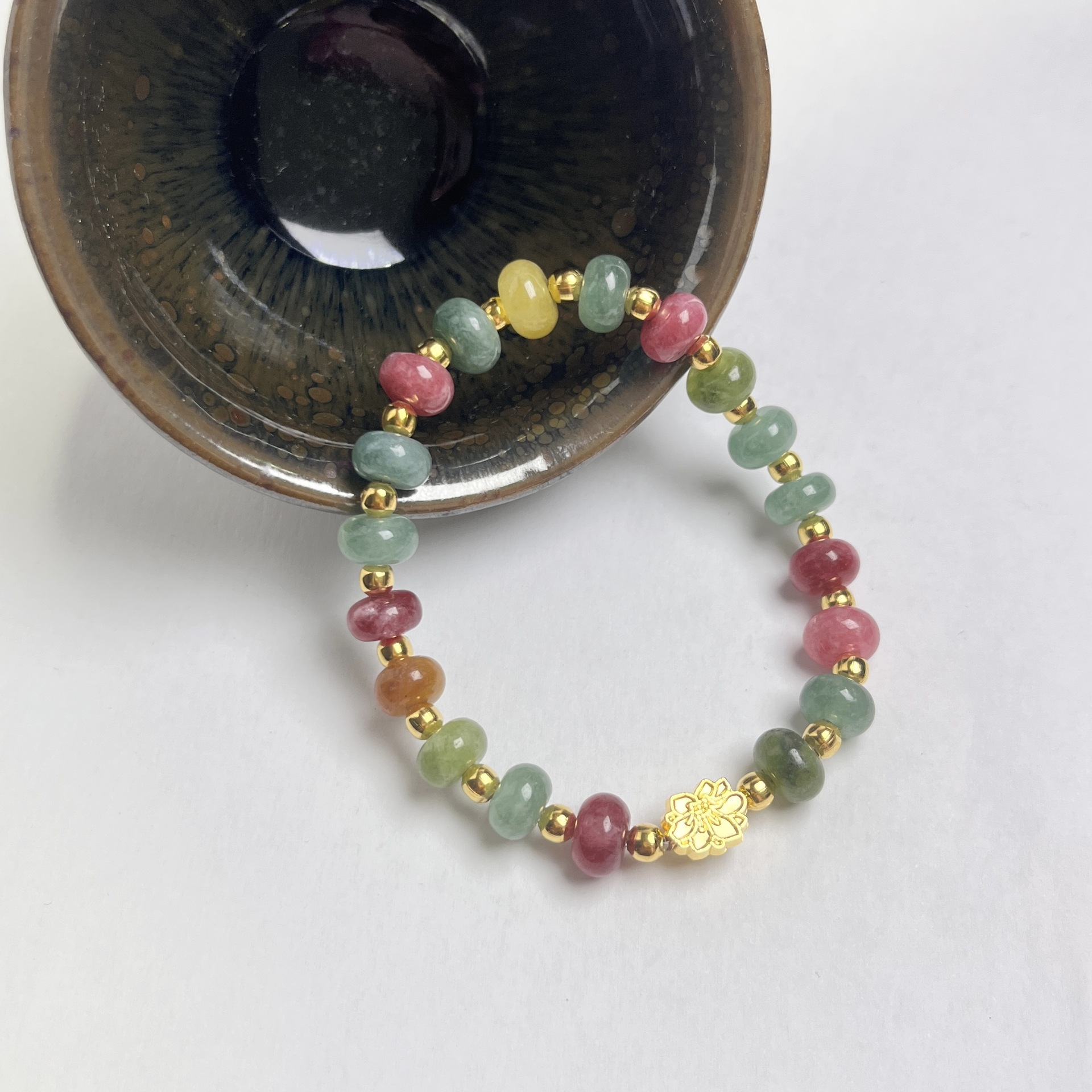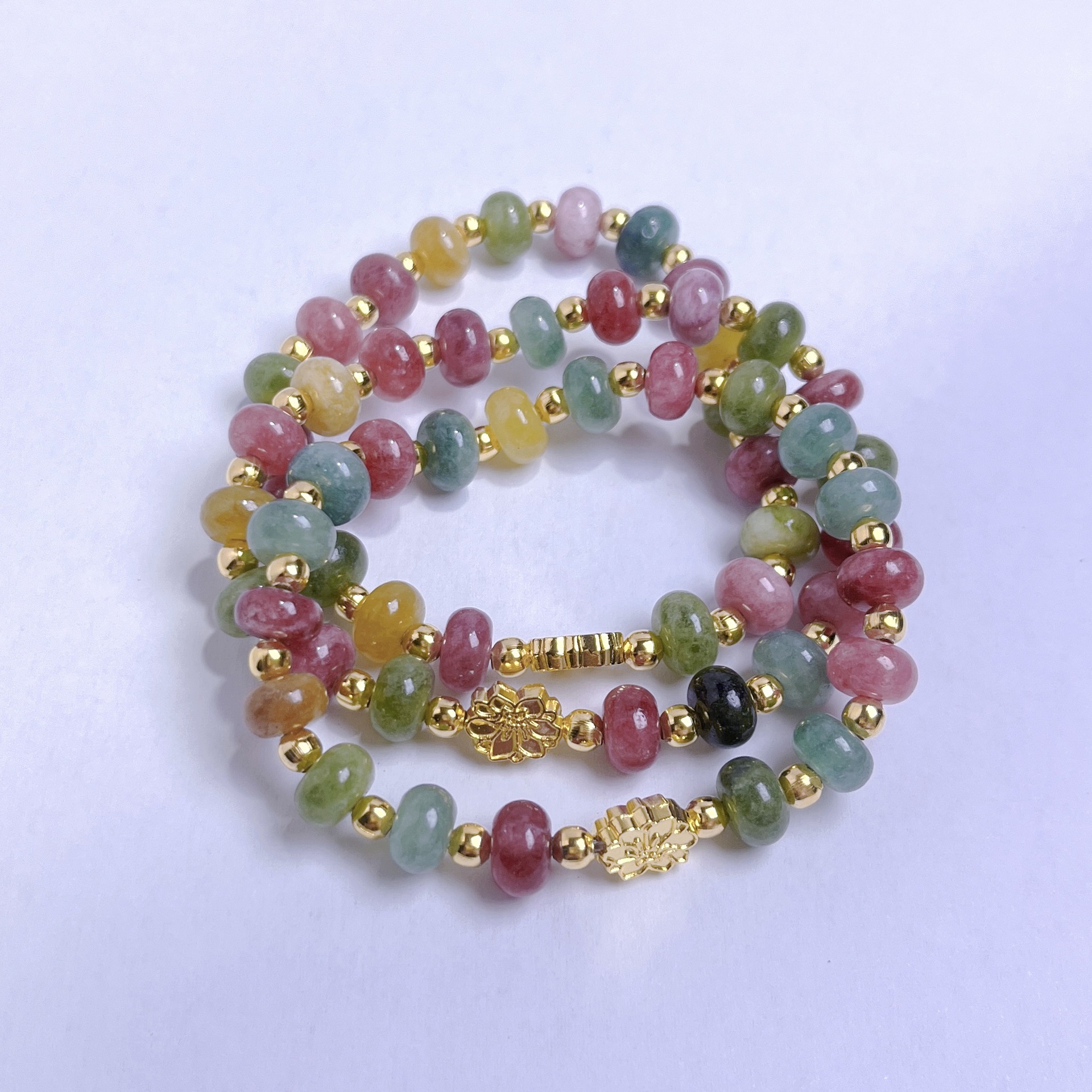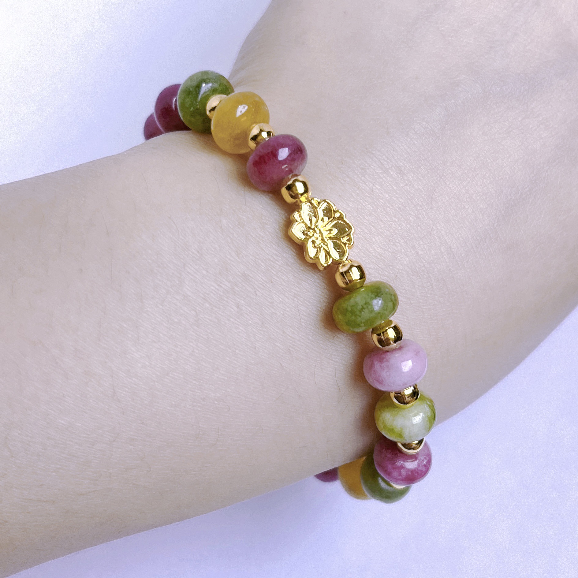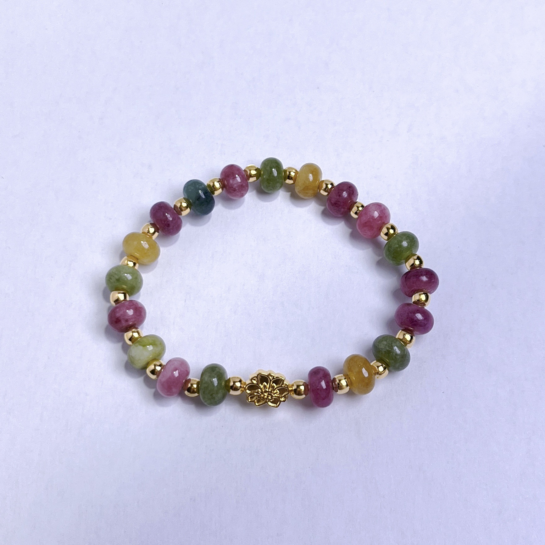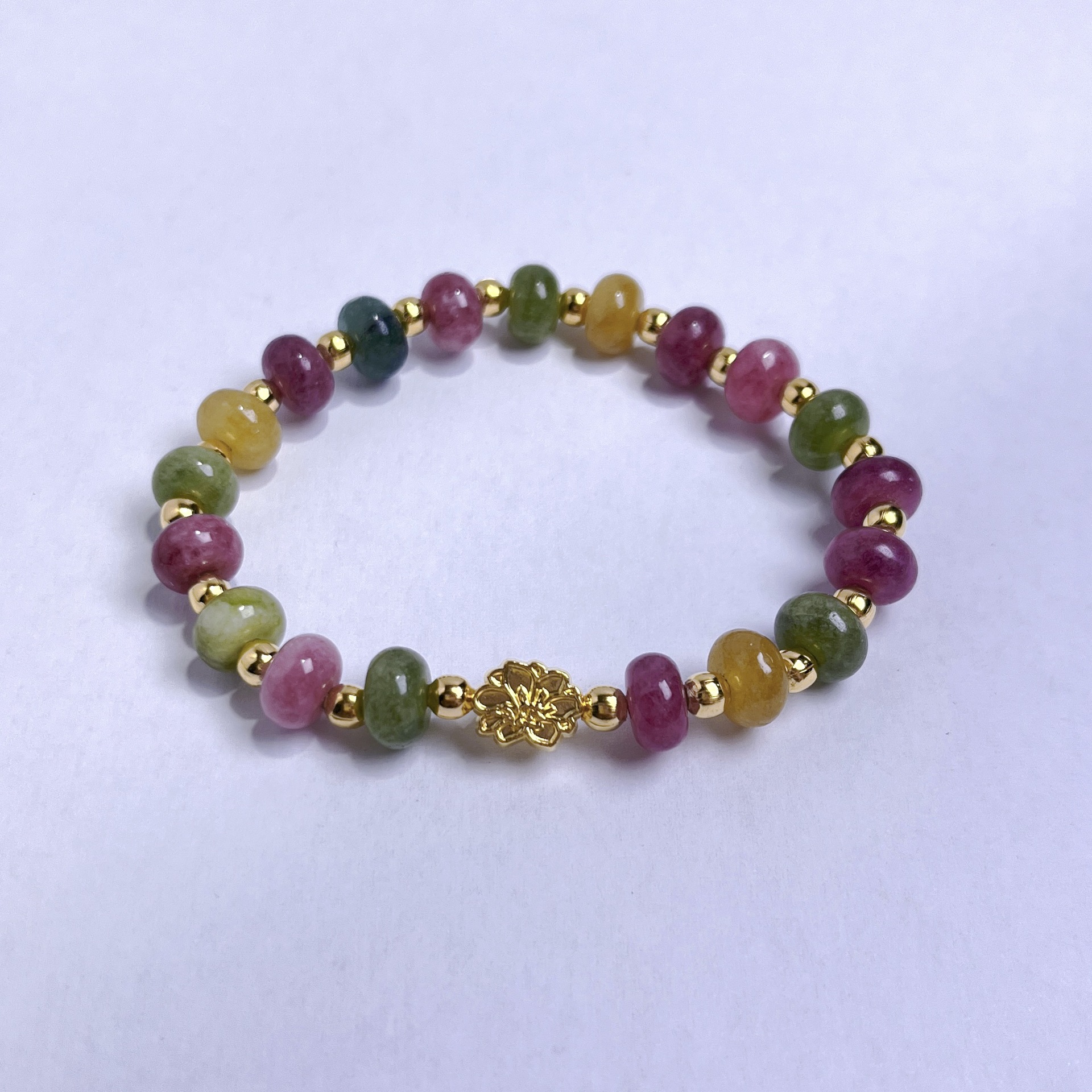 Tourmaline Bracelet, dath an óir plated, do bhean, dathanna measctha, 5x8mm, Fad 14 cm, Díolta De réir PC