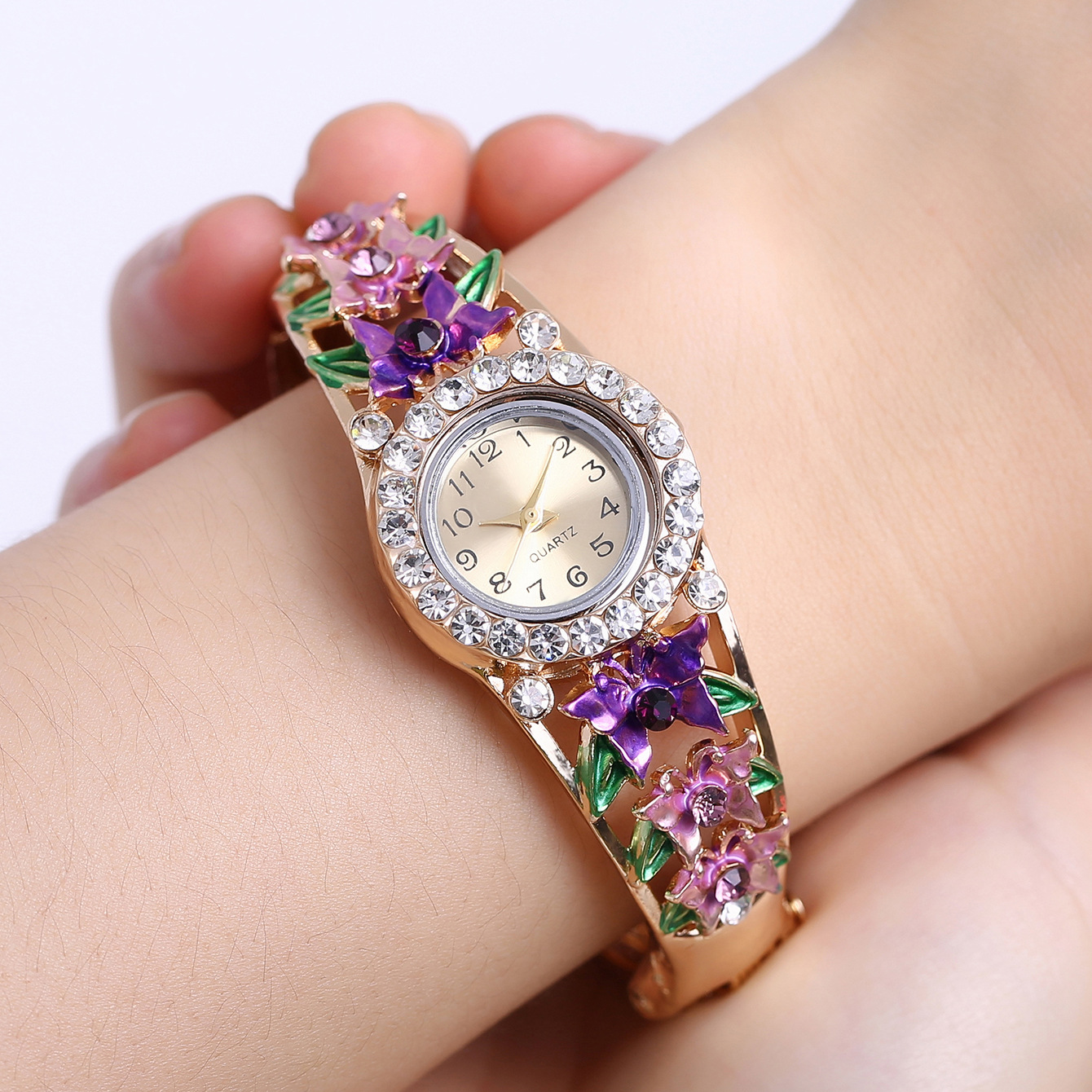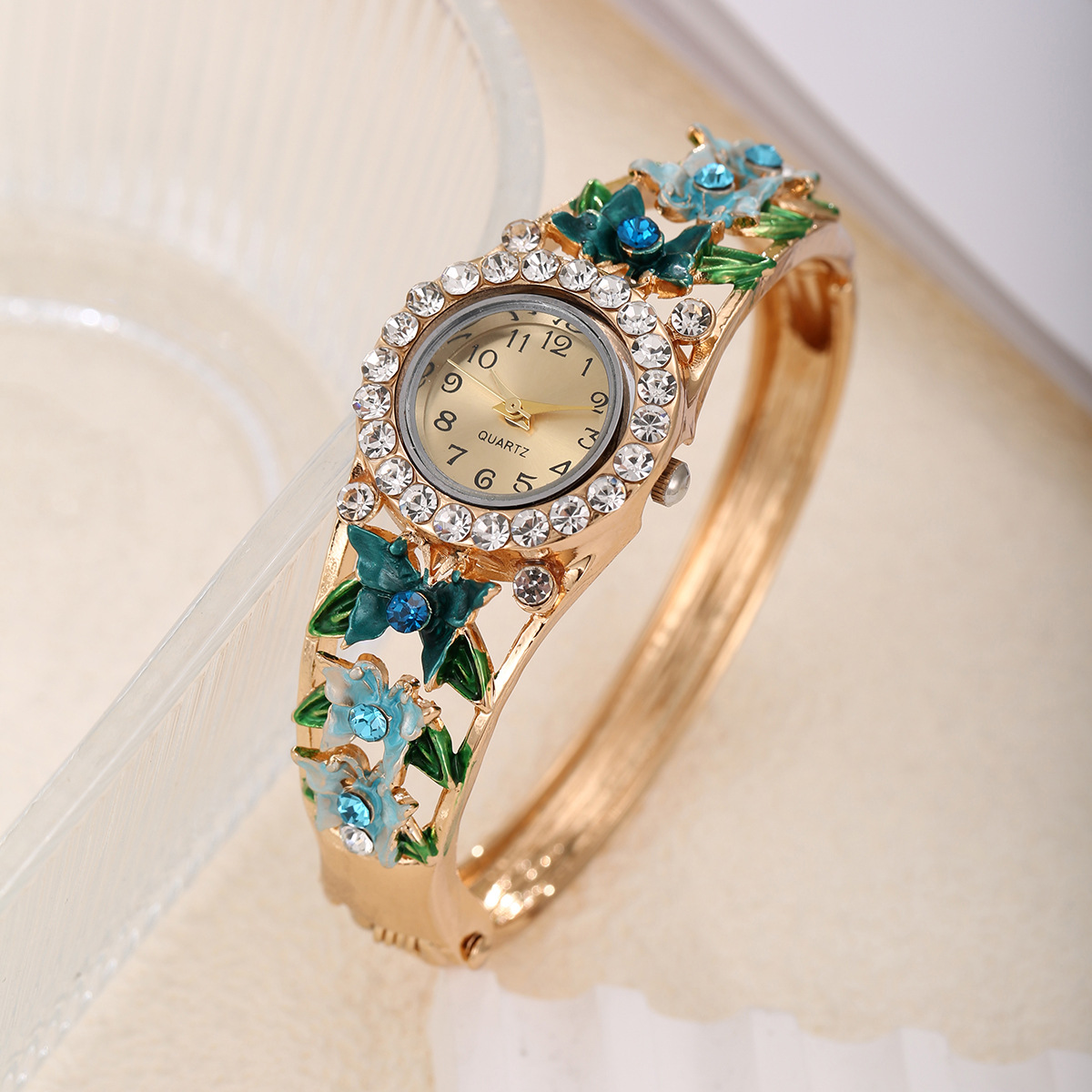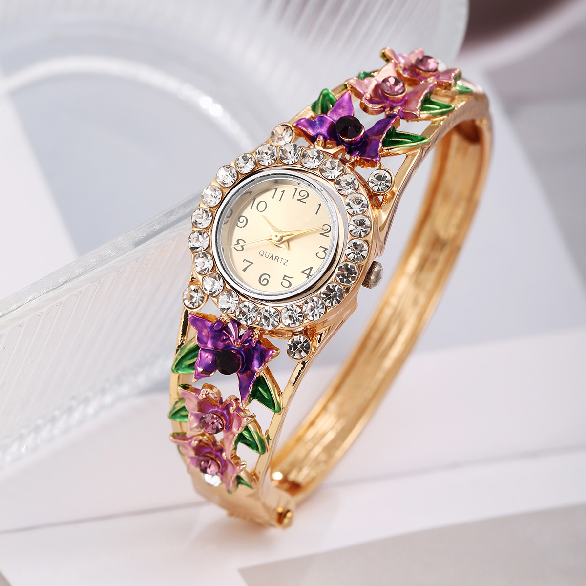 Uaireadóir Bangle, Alloy, le Gloine & 304 Cruach dhosmálta, plátáilte, jewelry faisin & do bhean & le rhinestone, dathanna níos mó le haghaidh rogha, Fad 21 cm, Díolta De réir PC