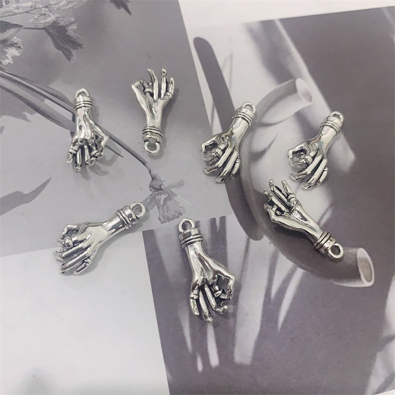 Pendants Sinc Alloy Hand, dath airgid antique plátáilte, DIY, nicil, luaidhe & caidmiam saor in aisce, 25x12mm, Thart 100ríomhairí pearsanta/Mála, Díolta De réir Mála
