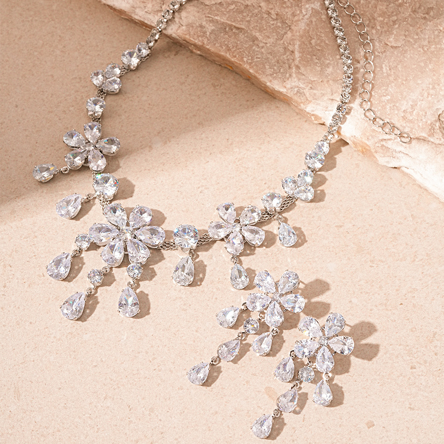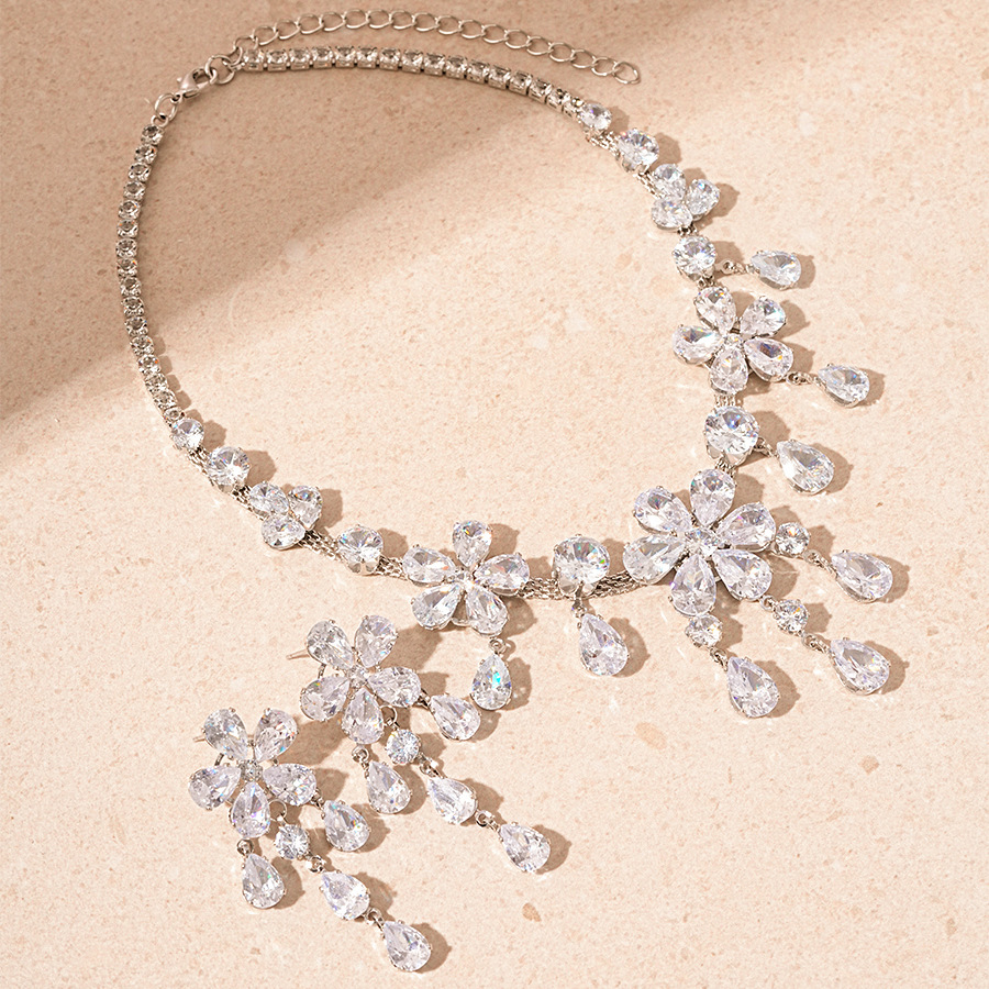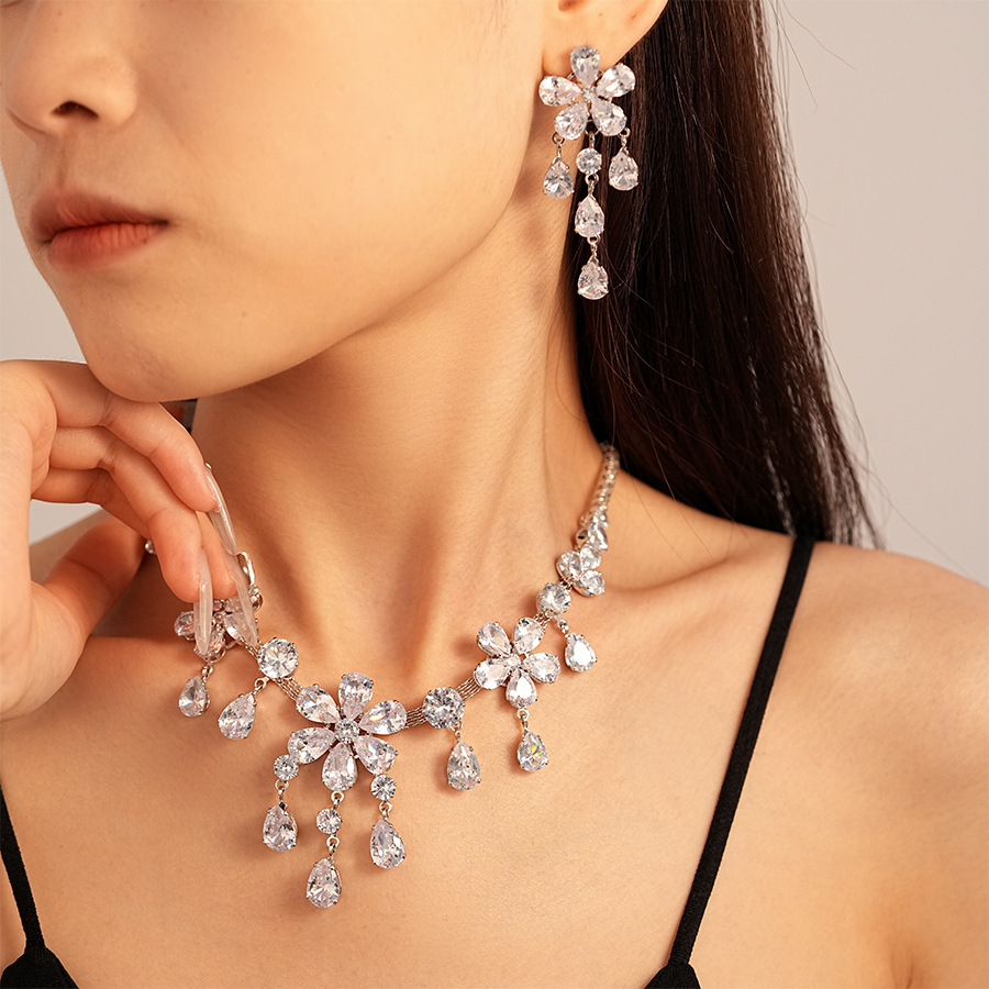 1:Silver flower drop necklace2:Silver needle-silver flower water drop earrings